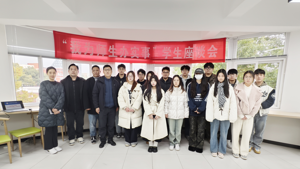 为切实了解学生的普遍需求、现实困境以及学生对学院管理服务工作的意见,及时发现并解决学生在学习、生活中面临的各项问题,12月12日下午,机关第五党支部在“一站式”学生社区3楼召开“我为师生办实事”学生座谈会。座谈会由党委学生工作部部长祝佳俊主持,学生处、教务处、财资处、后勤处等相关职能部门工作人员到会听取意见,各系学生代表参与座谈会。