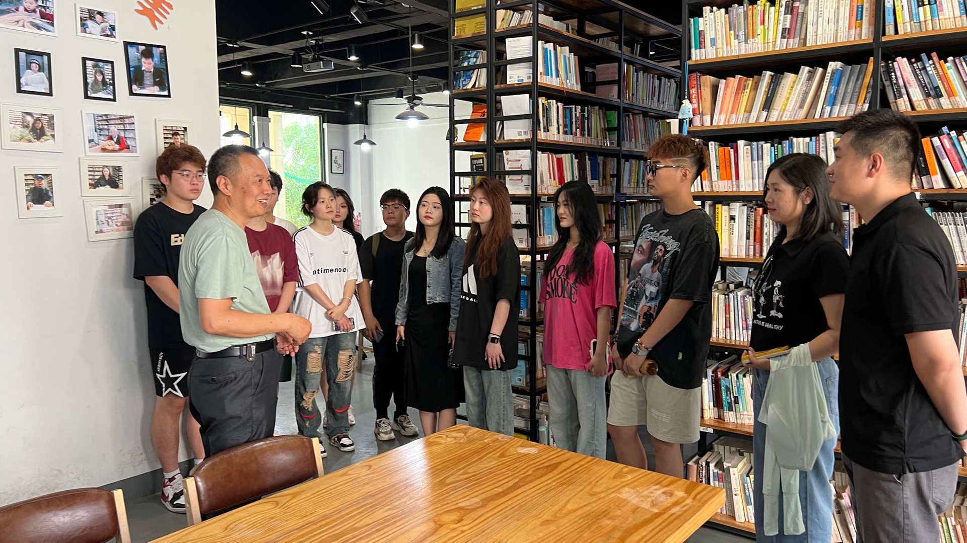 课后,戴老师带领大家参观了他一手创办的公益书房。 满屋的书籍都是戴老师挨家挨户求也好,买也好征集过来的,读万卷书行千里路,戴老师恰恰是行万里路得万卷书。当他说到现在的书房每年假期都会有小学生、中学生过来自习,也有老人过来写写书法、练练画的时候,他的眼神一下子变明亮了,那种油然而生的自豪感引起了大家的共鸣。