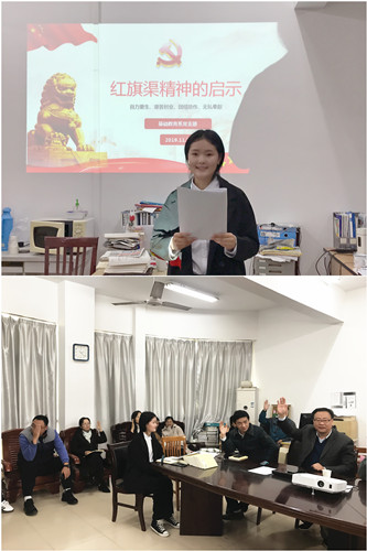 根据院党委的工作要求,结合“不忘初心、牢记使命”主题教育活动开展的实际,11月21日中午,基础教育系党支部在4402办公室组织了“支部书记上党课”活动。党课由该系党支部书记杨卫东主讲。