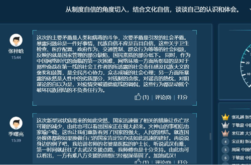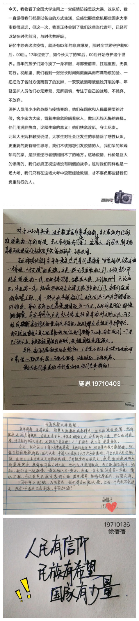 对此次大课,学院领导十分重视,周密部署。我系思政课老师在接到大课通知后,开展网上集中备课,搜集相关资料,在网络教学平台上设定讨论议题,精心组织授课。同时,我系与教务处、学生处共同牵头,组织各系学生密切配合,积极参与,认真聆听做笔记,师生共同将思政课教学优势转化为防疫斗争的强大力量。