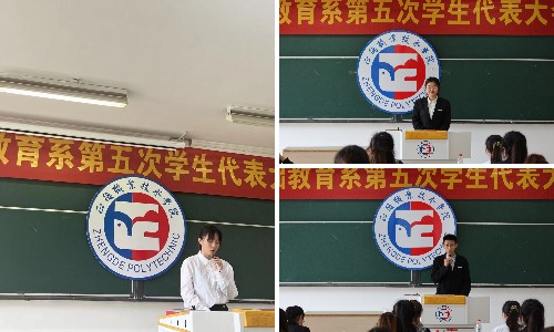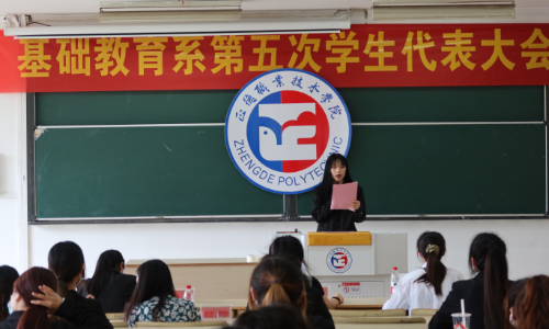 基础教育系第五次学代会在雄伟的国歌声中拉开序幕。首先,兄弟院系学生会代表殷筱雯和院学生会代表李飞分别致辞,表达了院团委和兄弟院系对我系学生会工作的大力支持,对我系既是鼓励也是鞭策,我系更应自觉肩负起新时代赋予我们的历史责任,不断开创我系学生工作新局面。大会秘书长魏玮在讲话中希望我系学生组织在院团委和系党支部的领导下,继续开拓进取、奋发有为,与时代共奋进,与学院共发展。