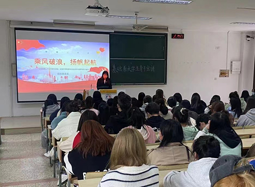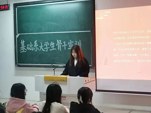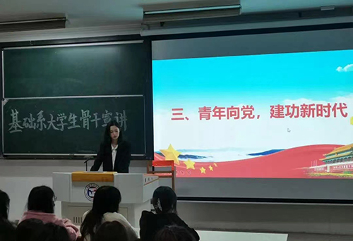 系团总支副书记高新茹,以“乘风破浪,扬帆起航”为主题,引导我系当代大学生必须从自身出发,着眼当下,不断学习新知识,不断提高自身综合能力,以实际行动向党组织靠拢。