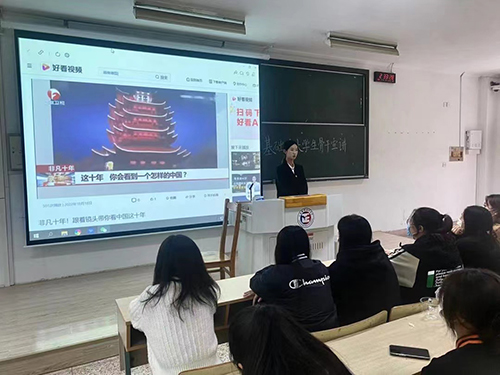 系执行主席魏雨菲以“春风十载歌不尽,勇毅前行谱新篇”为主题,从十年来中国经历的具有重大现实意义和深远历史意义的三件大事开篇,到中国十年前后的变化,最后呼吁同学们要不断强化自身专业能力,增强学习的主动性、创造性来报效祖国。