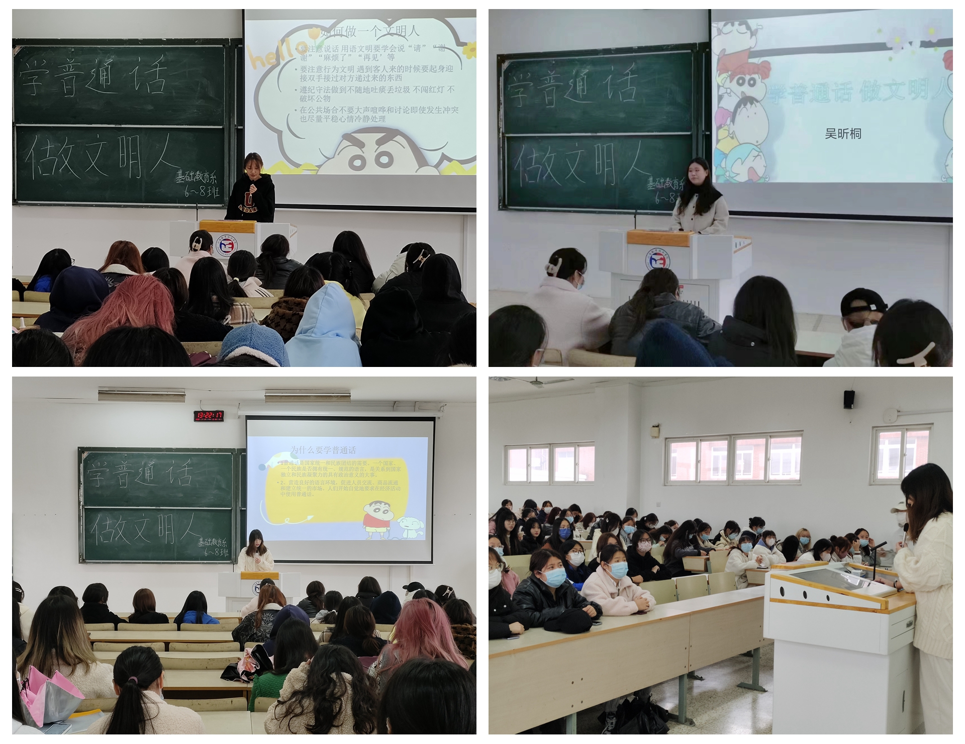 为进一步增强全系学生的语言文字规范意识,营造学生说普通话的浓厚氛围,构建和谐校园,营造良好的语言文字环境,我系于11月中旬开展“说普通话,做文明人”系列活动。