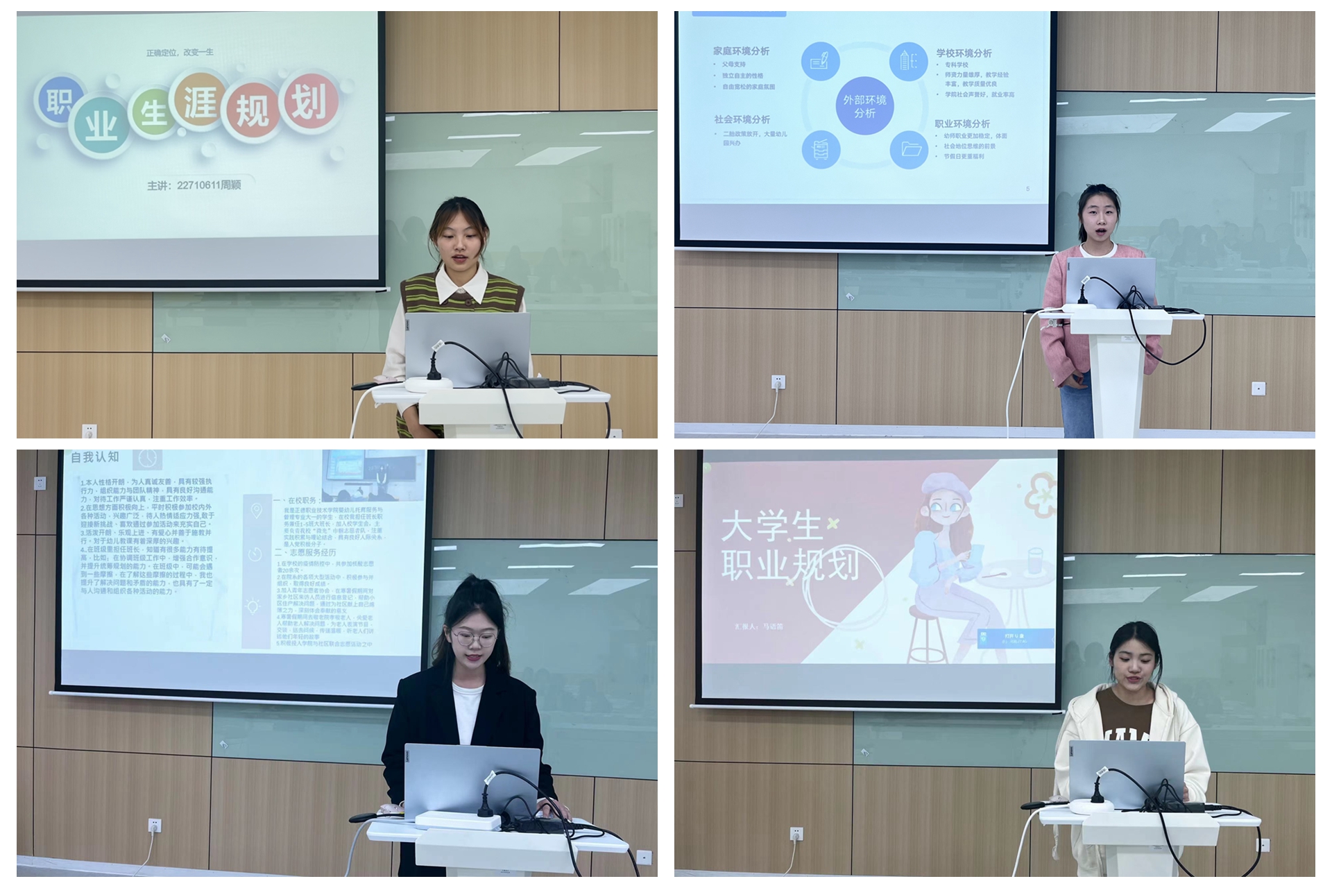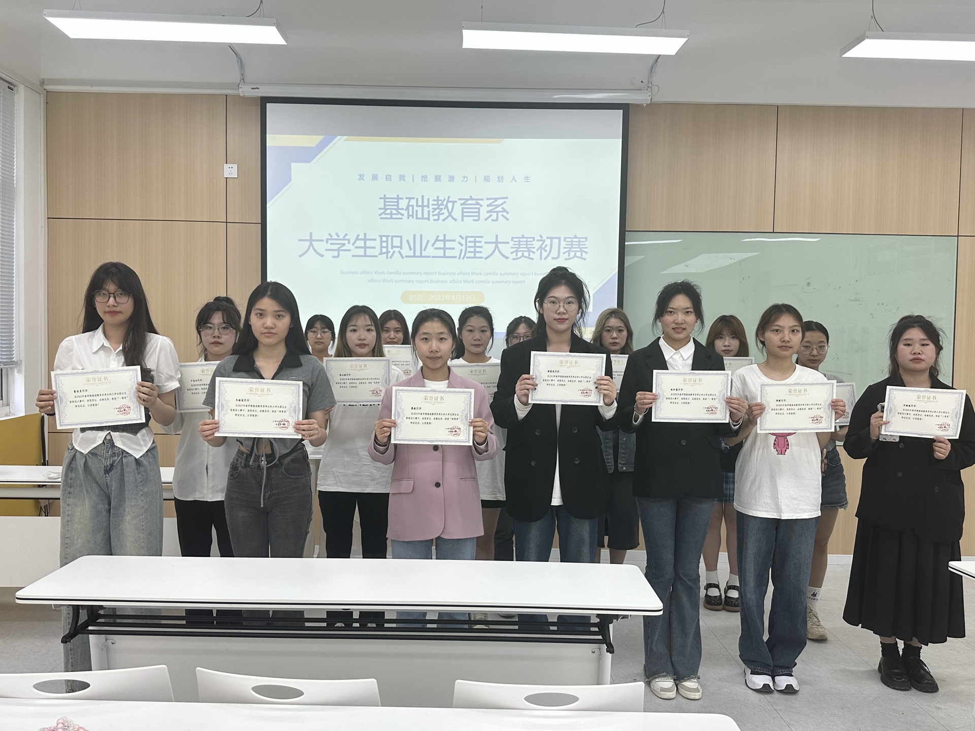 为践行“就业育人”的理念,激发我系大学生的职业规划意识,旨在帮助同学们认识和完善自我,激发自我潜能,树立职业生涯设计理念,尽早开始对未来职业发展的规划与实践。基础教育系于2023年4月13日16点在9205开展大学生职业生涯规划大赛初赛。系党支部书记、副主任杨春娟和辅导员魏玮、朱雯老师担任本次比赛的评委。赛前,辅导员动员全体大学生积极参与,而后从学生提交的规划书中评选出227101——227109班共16位学生参加本次系比赛。