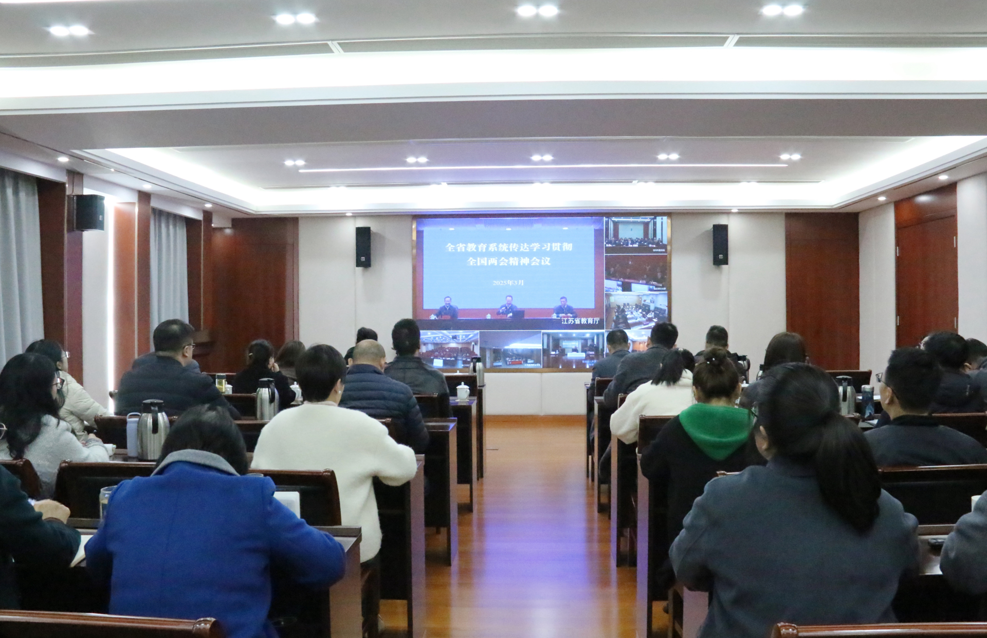 会上,参会人员观看全省教育系统传达学习贯彻2025年全国两会精神会议。集体学习全国政协常委、中国科学院院士、南京大学党委书记谭铁牛,全国人大代表、扬州大学党委书记丁建宁传达习近平总书记参加十四届全国人大三次会议江苏代表团审议,看望参加全国政协十四届三次会议的民盟、民进、教育界委员并参加联组会时的重要讲话精神和全国两会精神。