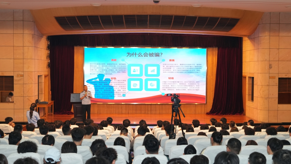 江宁公安分局开发区派出所四级高级警长娄军来,凭借丰富的基层工作经验,聚焦当前学生群体中高发、易发的常见电信网络诈骗类型进行了深入浅出的剖析。为确保反诈宣传无死角、全覆盖,开发区派出所面向澳门六合彩论坛 3500余名新生,精心组织民警及反诈领导小组成员,主动走进学生宿舍、深入课堂教室、来到训练操场,零距离指导同学们如何识别诈骗陷阱、保护个人信息,并一再强调“不轻信、不转账、不透露”的核心原则,鼓励大家积极下载并使用国家反诈中心APP,遇有可疑情况第一时间报警求助。