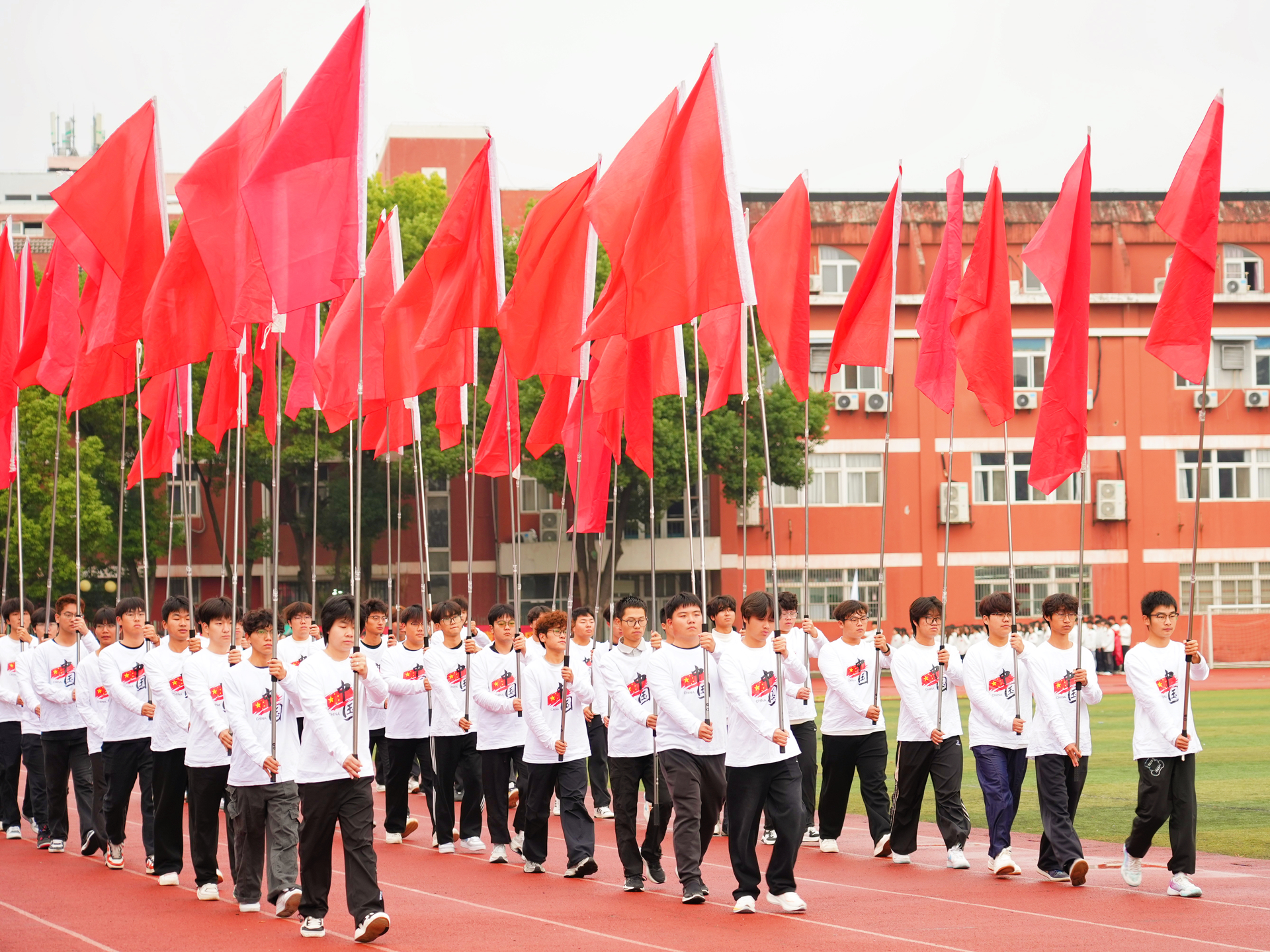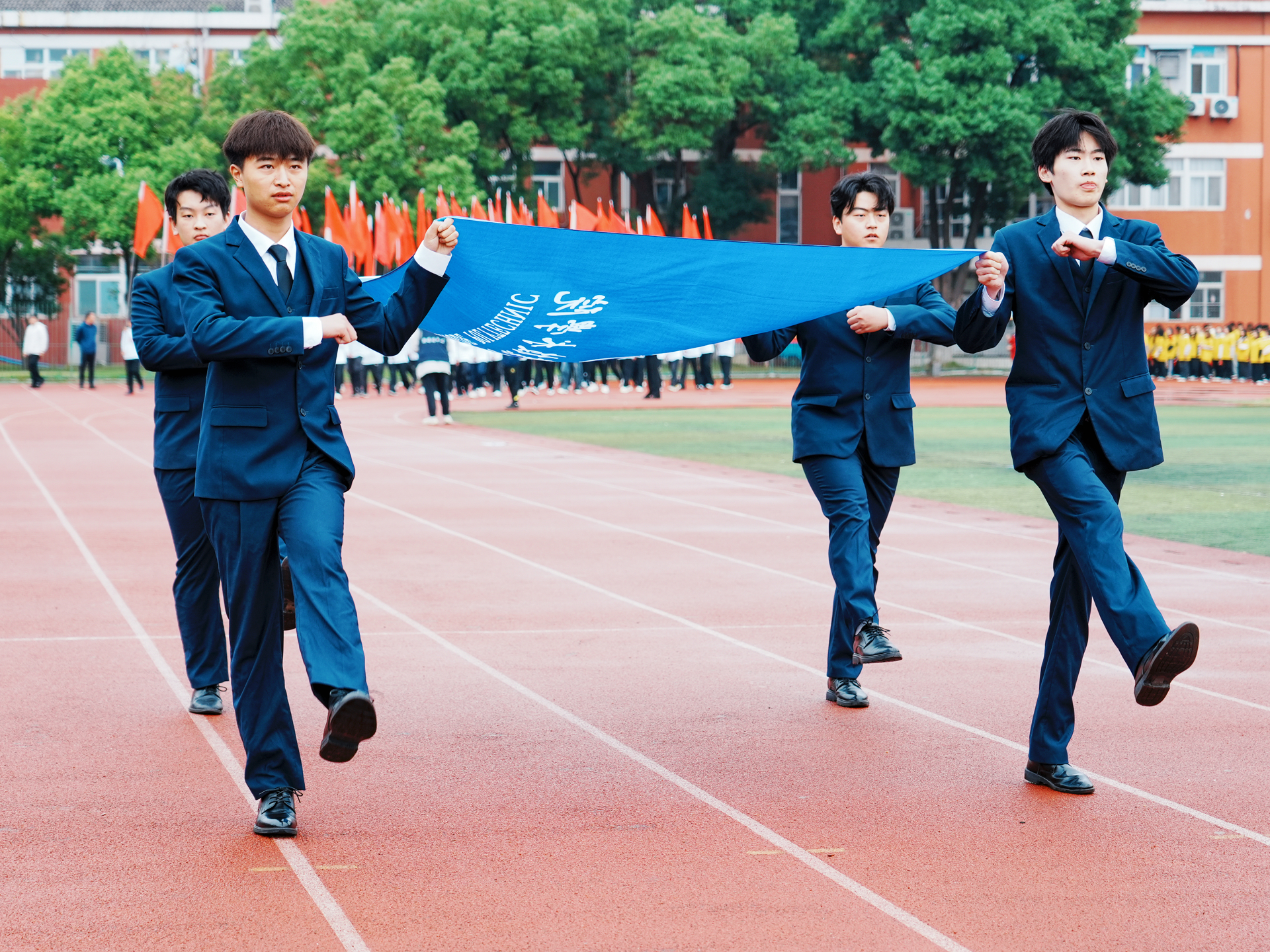 随着激昂的《运动员进行曲》响起,由国旗、校旗与红旗构成的前导队以及各系学生组成的方队,依序步入会场。各系代表方阵士气高昂、口号铿锵,彰显出澳门六合彩论坛 学子积极进取、团结奋进的青春风貌。