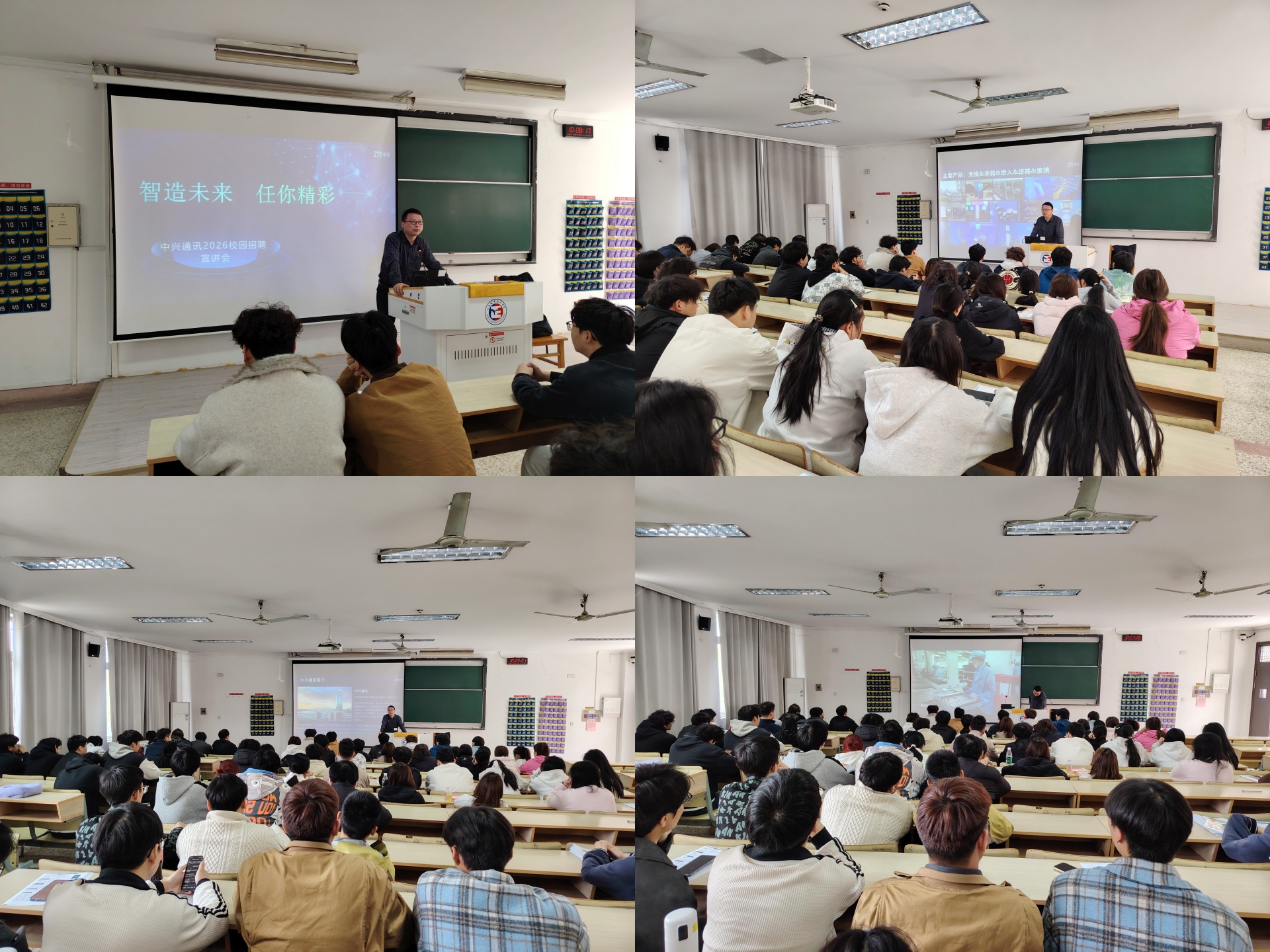3月27日上午,中兴通讯(南京)有限责任公司(以下简称“中兴通讯”)校园招聘宣讲会在1204教室举行,电子与信息技术系2024级相关专业约150名学生到场参加。