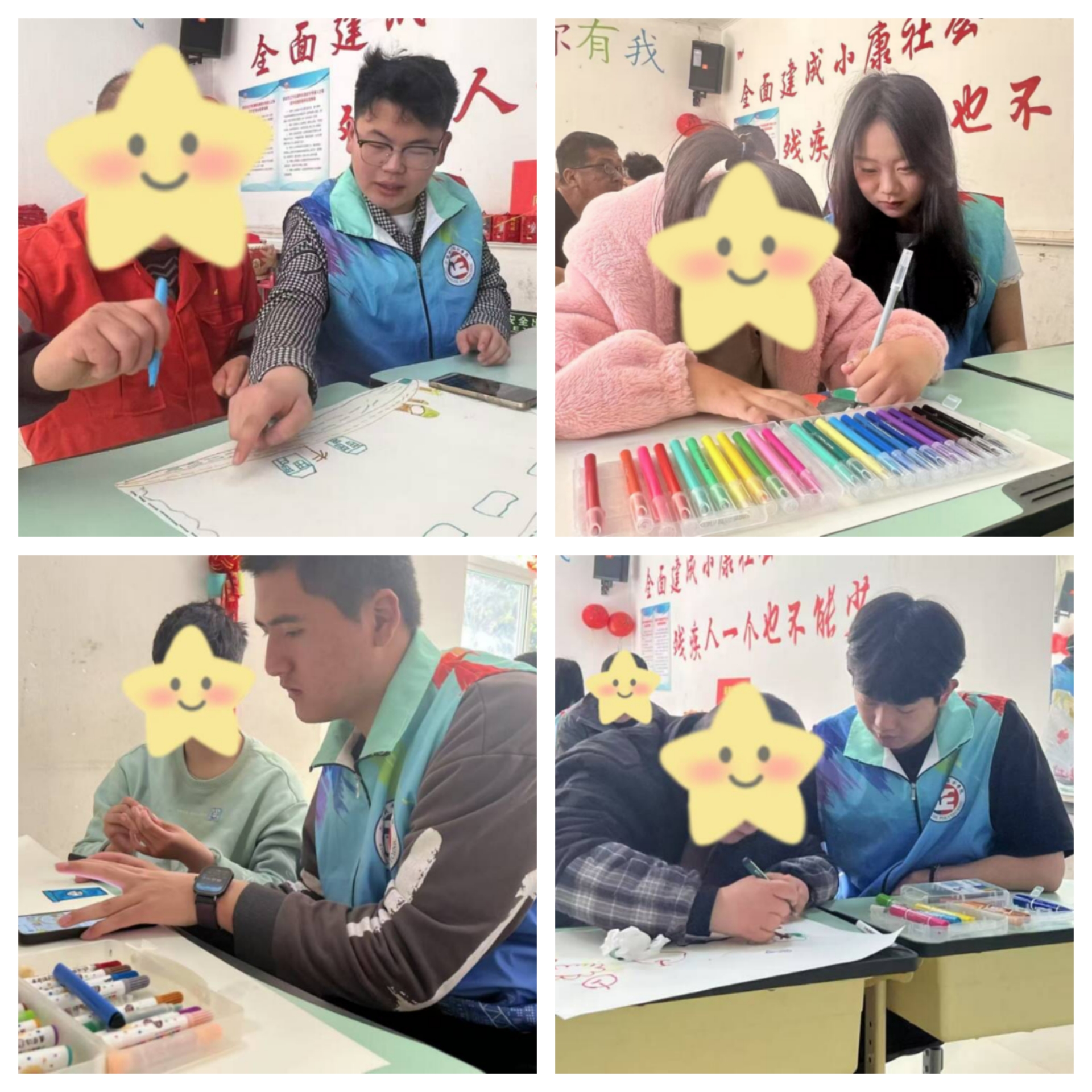 活动当天,同学们早早抵达君子残疾人之家。在君子残疾人之家,同学们与残疾人携手,用缤纷画笔与真挚陪伴,共同绘就饱含希望与温暖的手抄报 ,这些绘画作品主题丰富,有描绘美好生活的,有传递乐观精神的,满含着汽机系志愿者的热忱之心。