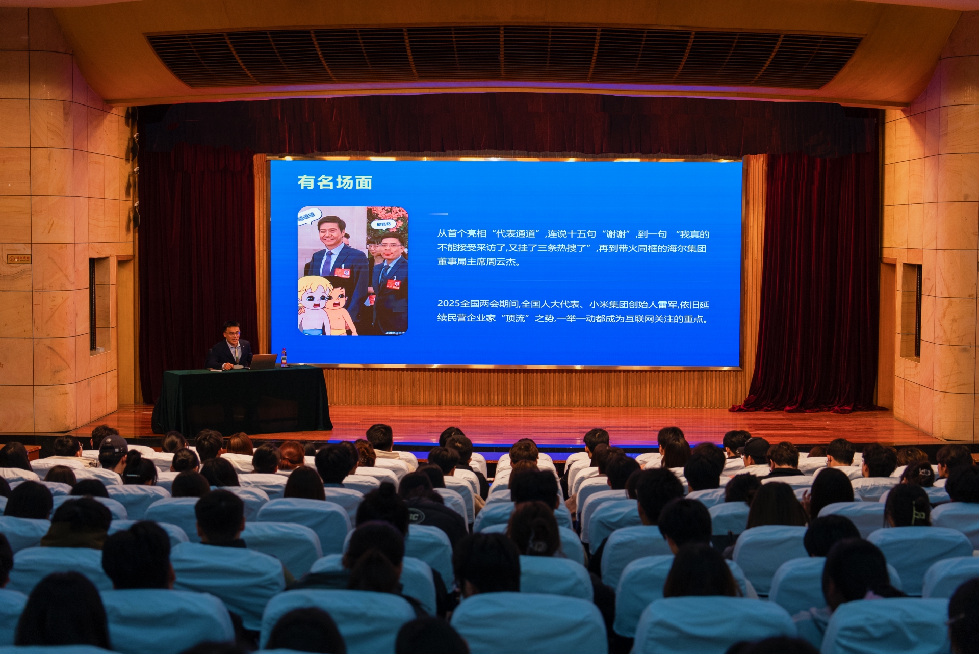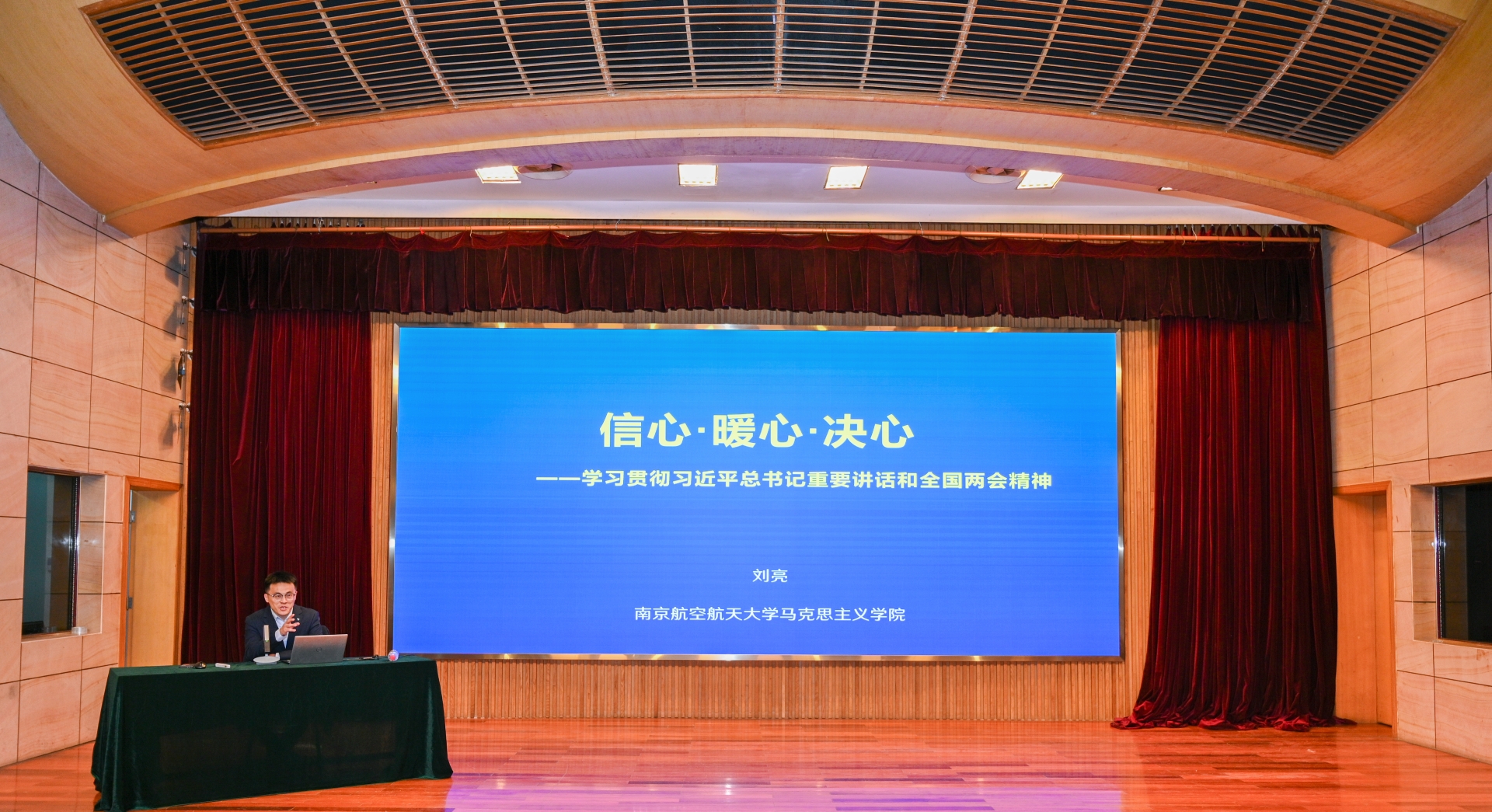 为深入学习贯彻2025年全国两会精神,引领大学生把握新时代党和国家事业发展的新部署、新要求,进一步提升青年学生的思想政治素养,3月20日下午,澳门六合彩论坛 团委在报告厅举办学习全国两会精神专题培训会。江苏团省委青年讲师团成员、南京航空航天大学马克思主义学院副教授刘亮老师以“学习贯彻习近平总书记重要讲话和全国两会精神”为主题做专题授课,院系专兼职团干部、第十四期青马工程培训班学员、2025年春季学期入团积极分子共240余人参加了本次培训会。