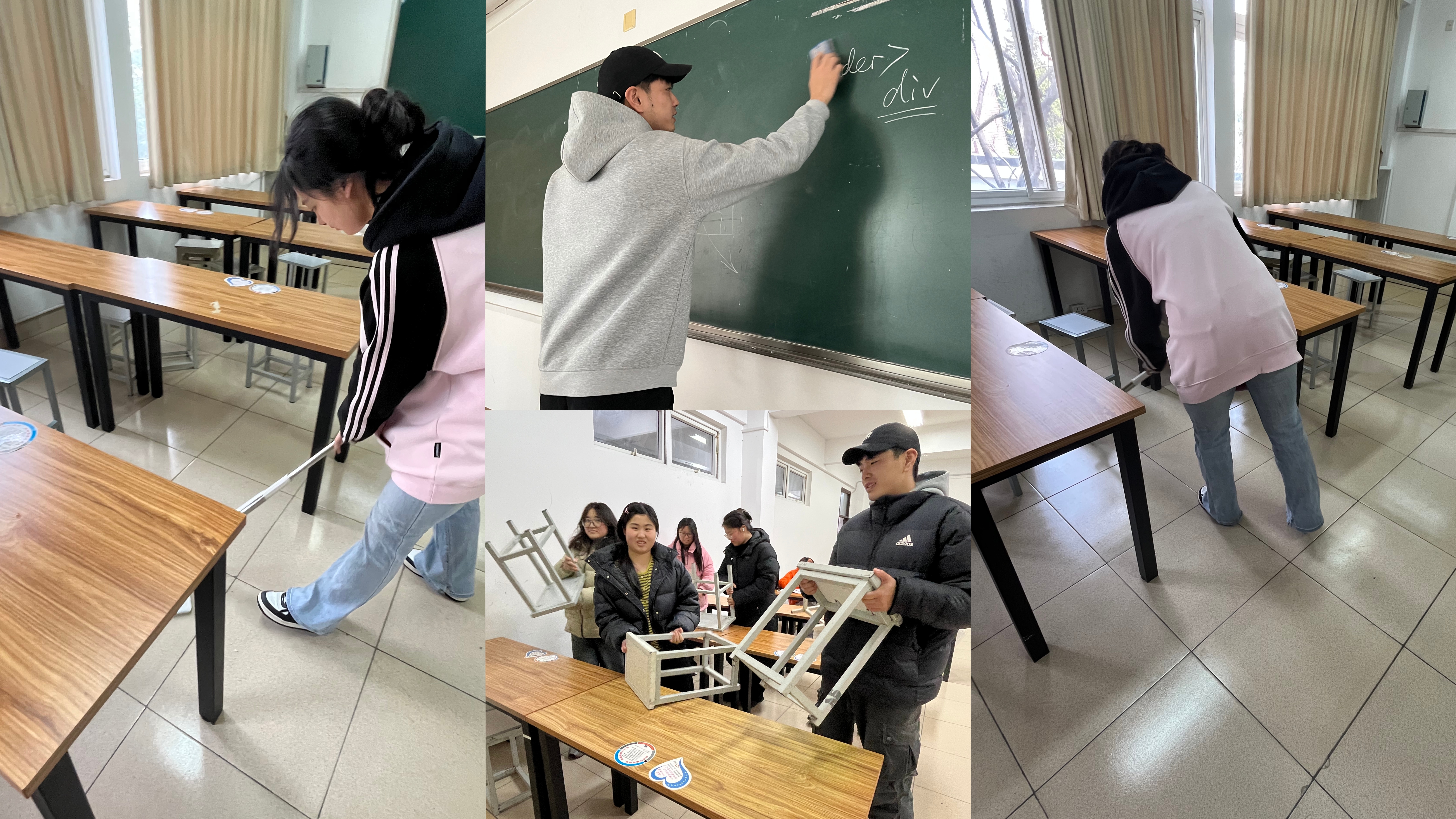 良好的学习环境是高效学习的重要保障。新学期伊始,艺建系组织开展了教室环境整理活动,同学们分工合作,有的整理桌椅,还有的擦窗户,大家干劲十足,气氛融洽。经过一天的辛勤劳动,教室环境焕然一新,地面干净整洁,桌椅排列整齐,黑板和窗户明亮如新。整理后,同学们纷纷表示:“看到整洁的教室,心情都变好了,学习也更有动力了!”此次活动不仅培养了学生的劳动观念,更增强了集体荣誉感,让雷锋精神在劳动实践中得到传承。