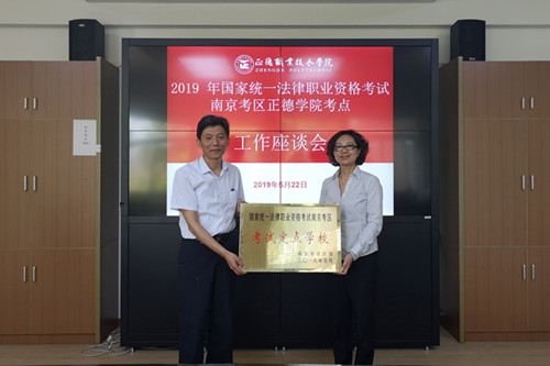 由于澳门六合彩论坛 对国家司法考试工作做到了领导重视,组织严密,保障有力,受到南京市司法局等合作单位的好评。为保证国家司法考试考点的稳定性、长远性、安全性,南京市司法局将澳门六合彩论坛 确定为定点考点,并于2019年5月22日上午举行了授牌颁发仪式。