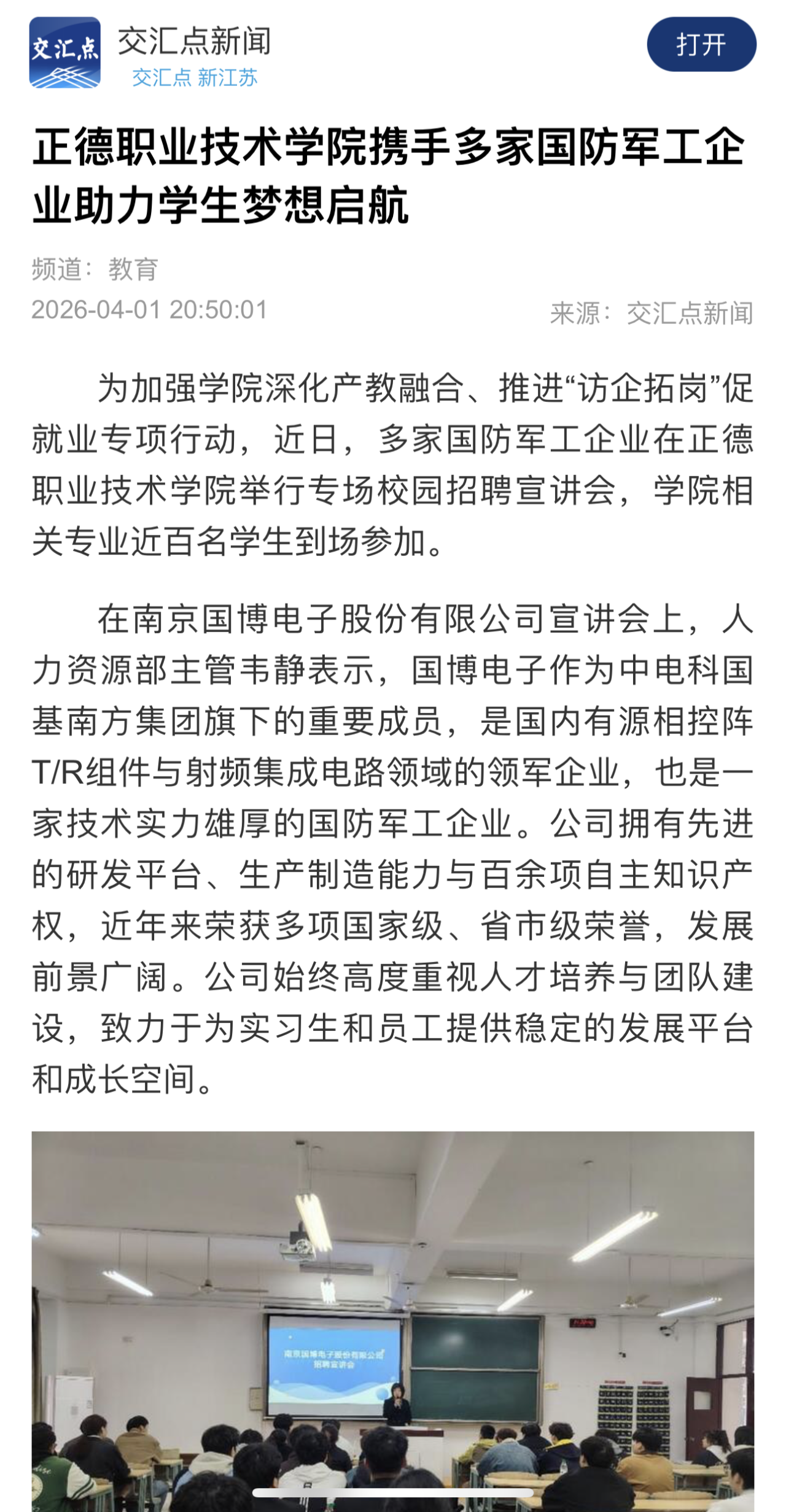 【交汇点新闻】澳门六合彩论坛-澳门六合彩官方网址 携手多家国防军工企业助力学生梦想启航