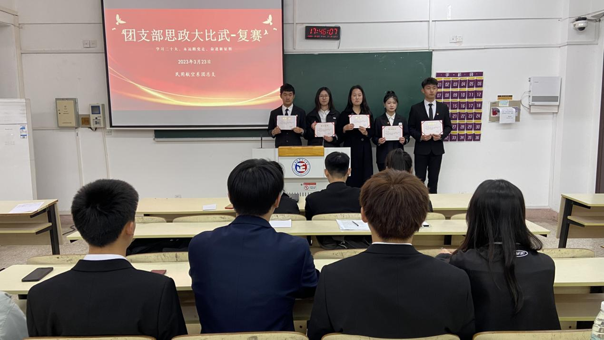 为深入学习宣传贯彻党的二十大精神,进一步聚焦思想引领主责主业,团结引领全系团员青年坚定不移听党话、跟党走,怀抱梦想又脚踏实地,敢想敢为又善作善成,立志做有理想、敢担当、能吃苦,肯奋斗的新时代好青年。民用航空系于3月23日在2304教室举办“学习二十大,永远跟党走,奋进新征程”团干部思政技能大比武。
