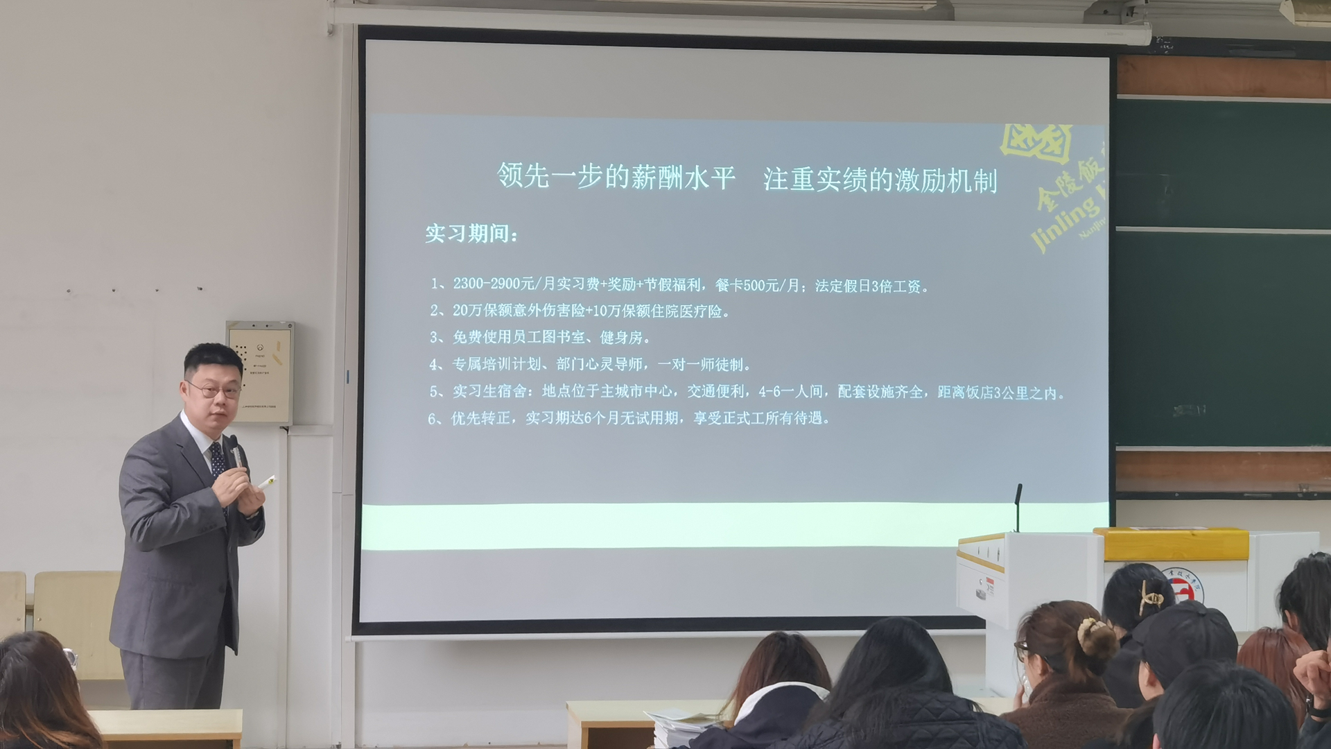 为做好系部2021级学生顶岗实习就业工作,进一步加强校企合作,为企业与学生搭建沟通交流平台,3月23日,民用航空系邀请南京金陵饭店集团有限公司到校开展企业宣讲活动。