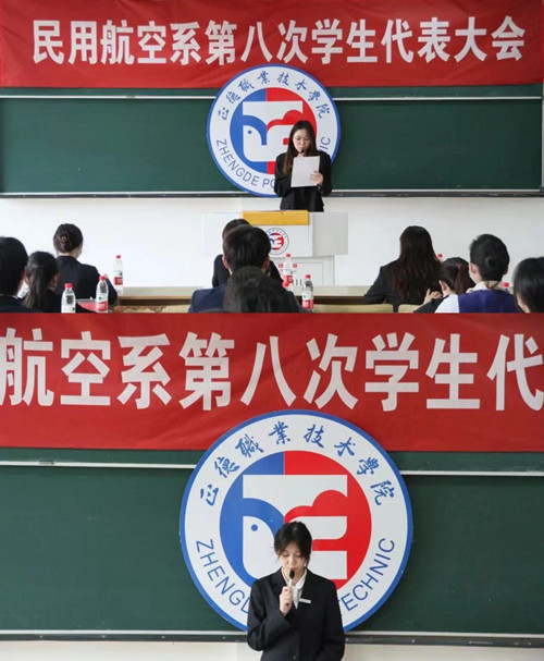 大会在庄严的国歌声中拉开序幕,院学生会执行主席姚敏慧在致辞中肯定了民用航空系学生会一直以来在加强青年学生思想引领、发挥服务功能、丰富文体活动等方面取得的成绩,希望民用航空系学生会继续深化改革,发挥好桥梁作用。随后,艺术设计与建筑工程系学生会执行主席上台宣读贺信,他们代表兄弟院系向本次大会的顺利召开表示热烈的祝贺,衷心祝愿民用航空系学生会工作再上新台阶。大会秘书长陈瑶明确了本次大会的主要任务是:系统回顾总结过去一年来学生会在思想建设、组织建设、校园文化建设和服务青年成长成才等方面的工作成绩和经验,从党的百年伟大奋斗历程中汲取继续前进的智慧和动力,规划部署下一阶段学生会工作,推进学生会深化改革。使学生会更好地代表和服务广大同学,更好地团结和凝聚广大同学,听党话、跟党走,为推进学院和系部各项事业发展,实现中华民族伟大复兴贡献青春力量。最后民用航空系党支部纪检委员吴慧讲话,她表示,在过去的一年里,我系学生会在系党支部和院学生会的正确领导下,在院团委和系团总支的具体指导下,团结带领民航青年学生抗击疫情,主动作为,为打赢疫情防控阻击战贡献了智慧和力量。同时积极响应全国学联改革号召,坚持依法依章开展工作,在学风建设、学生权益维护、服务学生成长成才中发挥了不可替代的作用。同时对全系广大学生干部和青年同学提出三点希望:一、是广大青年学生要坚定理想信念,把握青春航向。二、是广大学生干部要提升素质本领,服务青年成长。三、是系学生会组织要加强自身建设,凝聚青年力量。要以改革创新精神研究学生会工作面临的新情况、新挑战,进一步发挥好学生会组织在各项工作中的桥梁纽带作用。