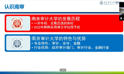 5月20日下午,经济与管理系通过腾讯会议举办了南京审计大学专接本宣讲会,南京审计大学继续教育学院副院长王军伟应邀在线进行宣讲。系主任王燕、副主任雷杨、全体辅导员以及2020级200余名学生参加了宣讲会。