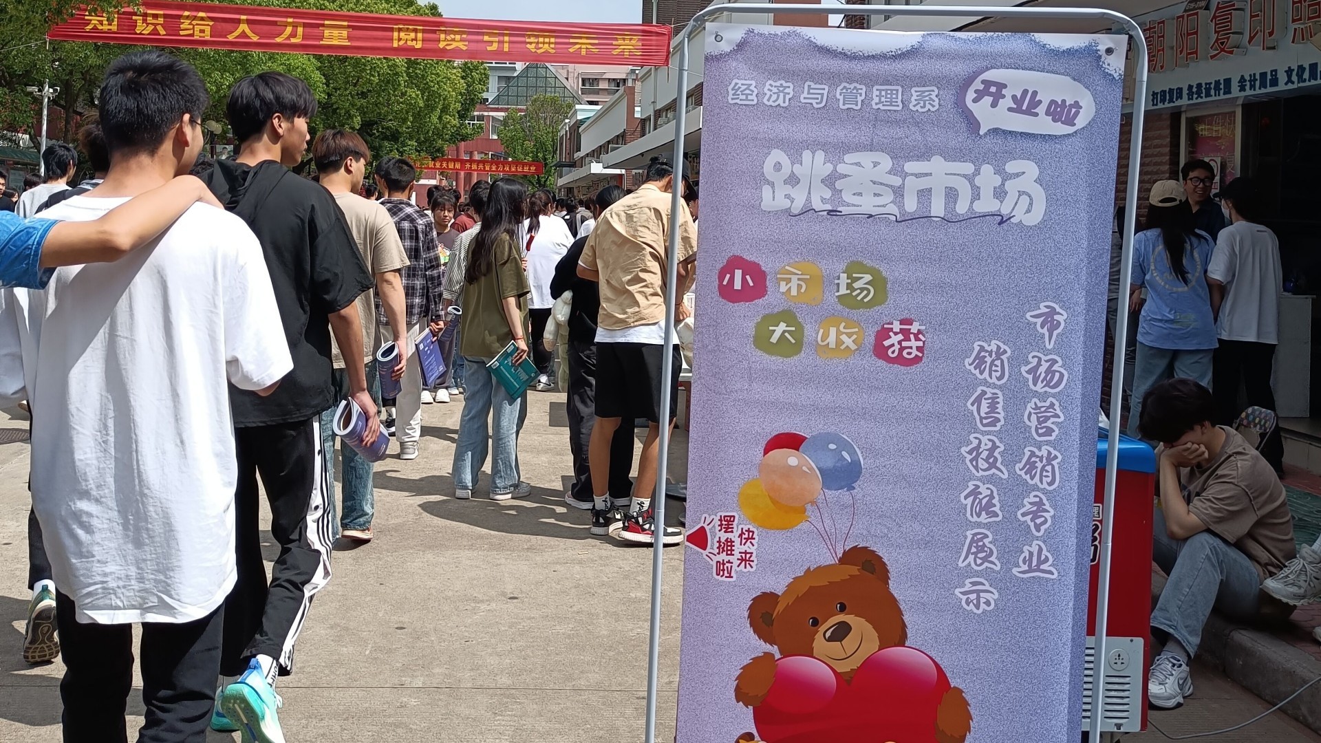 5月19日,经济与管理系市场营销专业在校园里举办了“跳蚤市场”, 旨在倡导崇尚勤俭的校园文化,发扬节约的传统美德,实现各类资源的重复利用。跳蚤市场活动现场气氛火爆,各小组的摊位上陈列了各式各样的二手商品,前来参观购买的同学络绎不绝。