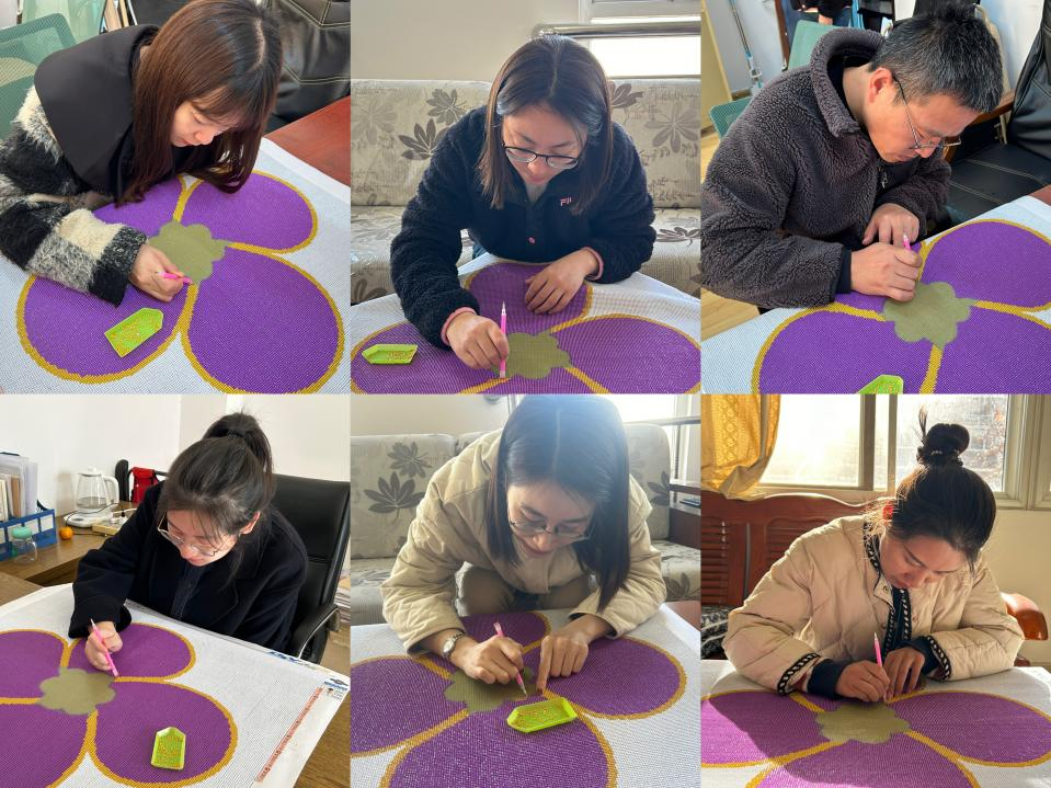 自11月1日起,该活动在经管系的10个团支部展开,共有200多名师生参与其中。他们用近40天的时间,精心制作了这幅由9万多颗钻石组成的紫金草。经管系师生们化身“绣娘”,将满腔的和平愿镶嵌在紫金草图案上。