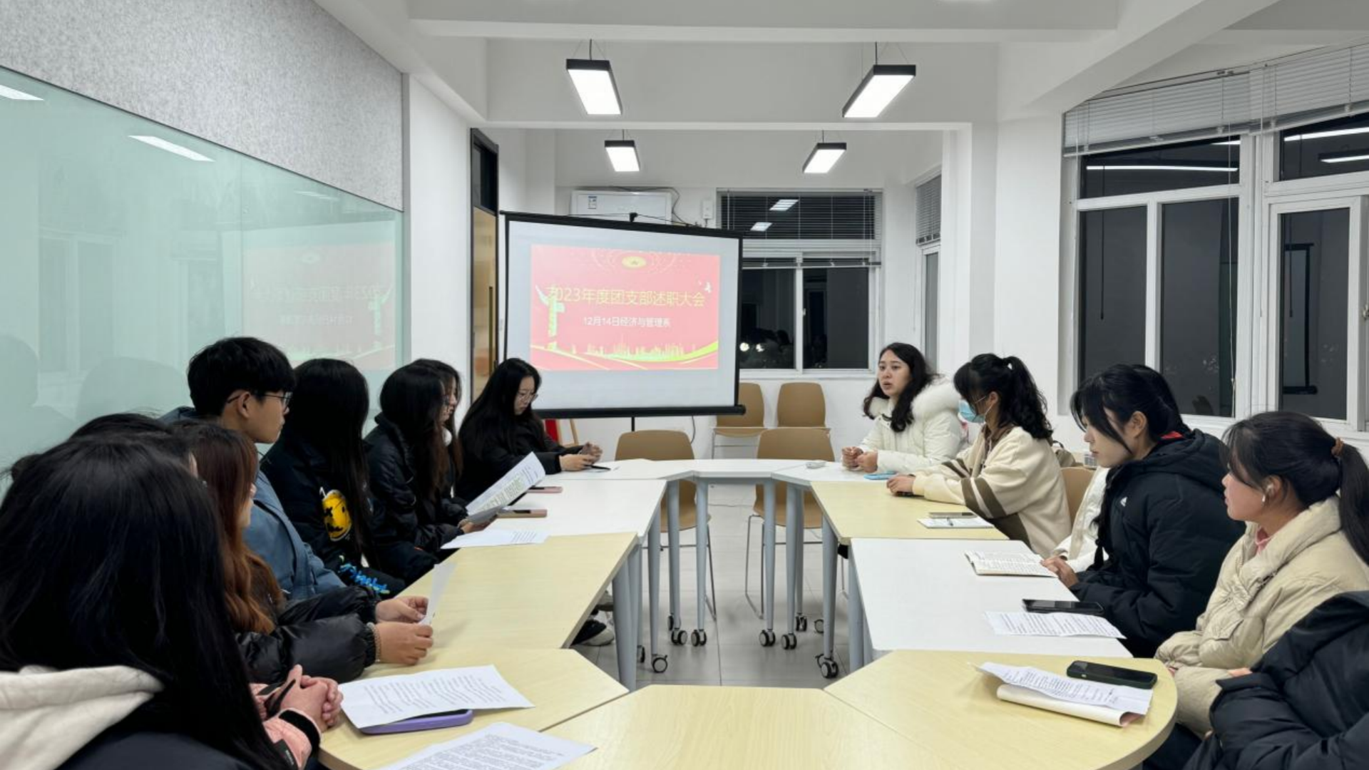 为深入学习贯彻党的二十大精神,切实加强基层团组织建设,12月18日晚,经济与管理系于南二一站式社区党团活动室召开了2023年团支部书记述职评议会。经管系团总支书记倪冰慧及全体团支书参与本次会议。系团总支副书记胡月主持会议。