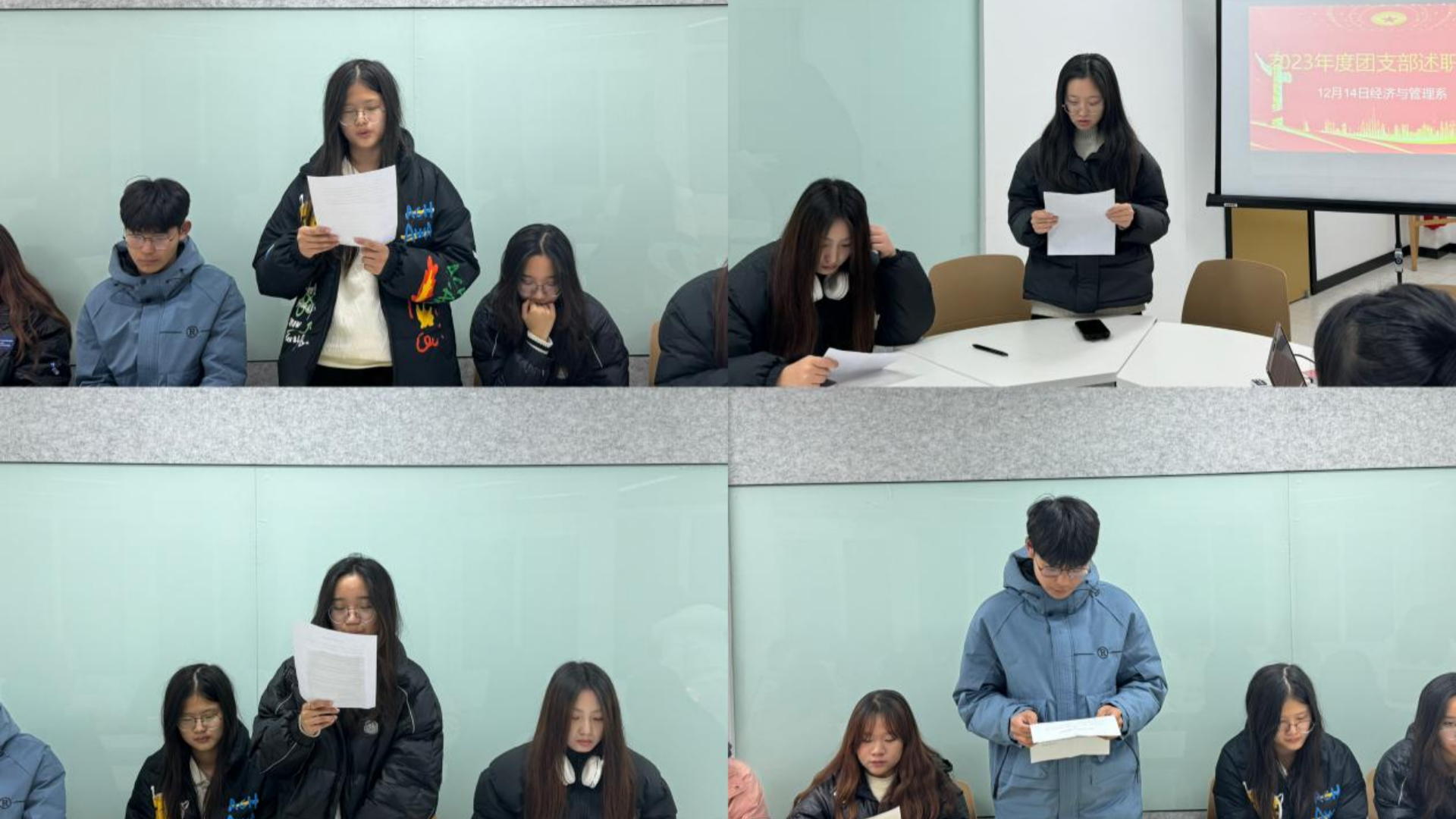 在集中述职前,各班级团支部召开了支部团员大会,团支书们向支部团员进行述职,总结了2023年的工作成果,并结合实际情况提出整改建议和目标要求。