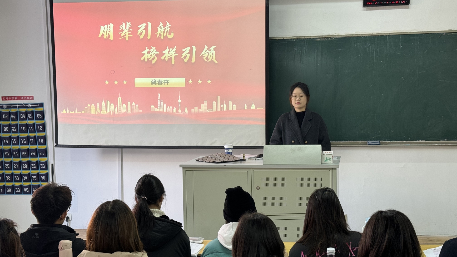 为加强学风建设,充分发挥优秀学生在思想引领、学习科研、社会实践等方面的引导作用,12月7日上午,经济与管理系举办“朋辈引航·筑梦未来”活动,邀请2021级优秀学生龚春卉进行分享。本次宣讲由辅导员刘妍主持,233304、233305班全体学生参加。