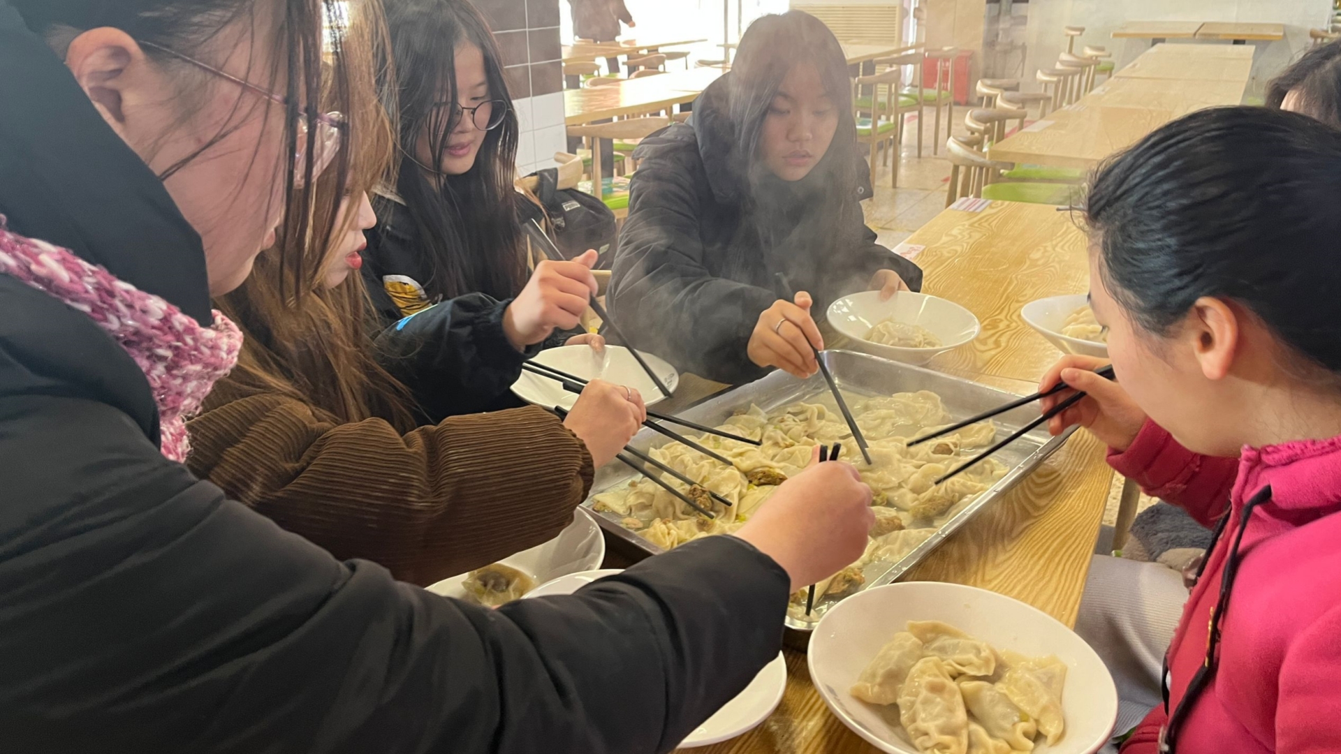 食堂工作人员协助大家把饺子煮熟,一阵诱人的香味弥漫开来,冬日的第一份水饺在同学们的欢声笑语中出炉。同学们纷纷表示,这是吃过的最有意义的一次水饺,不仅提升了包饺子的技术,还增进了师生之间、同学之间的感情。