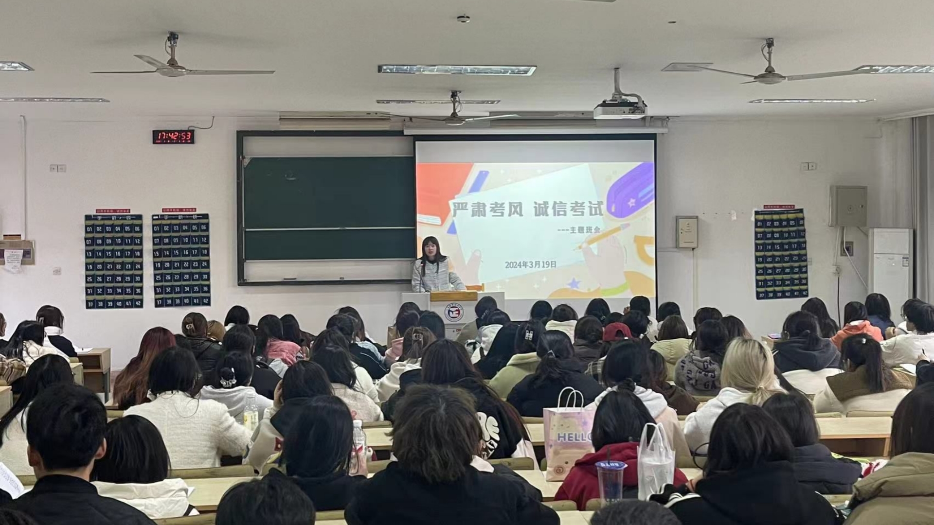 辅导员呙竹云依托周讲评,面向全体学生开展考风考纪教育,向学生强调全国计算机等级考试要求,遵守考风考纪,杜绝作弊行为发生。会后各班组织签署《诚信考试承诺书》,全体同学郑重做出遵守考试纪律、诚信参加考试承诺。