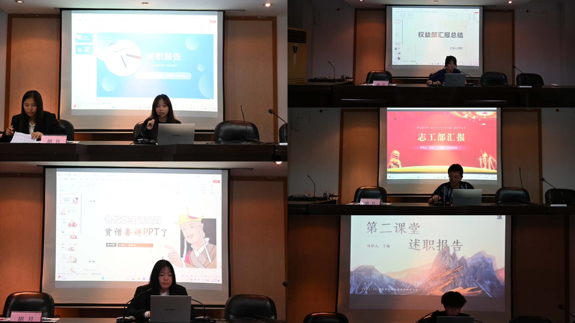 学生会及团总支各部门部长依次上台进行述职。在针对本学期部门发展进行回顾总结的基础上,着重体现团队工作要点与个人能力提升,对现阶段的问题进行总结反思并提出了下一阶段工作的解决方案。本次述职体现了各位学生干部对部门工作内容的深入了解以及他们认真负责的工作态度,同时也显露出他们对经济与管理系各部门未来发展的深切关怀与期待。学生干部们卓越的风采为经济与管理系学生会及团总支各部门的日常工作运转提供了充分的保证。最后刘妍为部门成员、部门干事及负责人颁发相应的奖状与聘书。