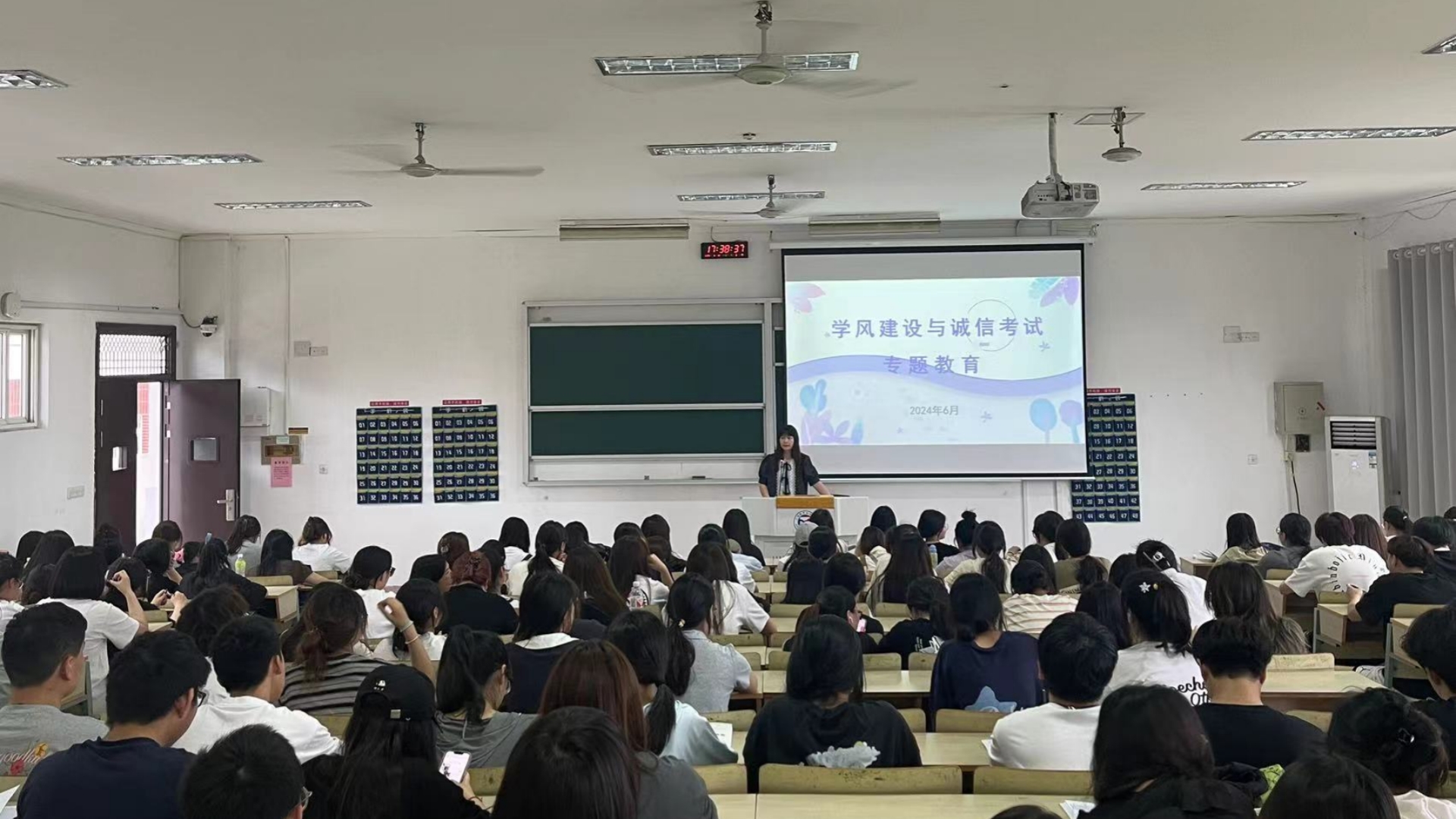 最后,呙竹云号召全体同学积极参与到学风建设和诚信考试的行动中来,共同签署了诚信考试承诺书,这一专题教育不仅增强了学生们的诚信意识,也营造了浓厚的诚信氛围,她希望每一位同学都能树立诚信理念,用实际行动践行“五字”教育精神。
