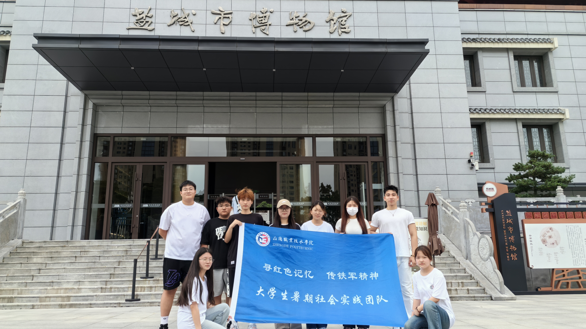 暑期社会实践团队走进盐城新四军纪念馆,该馆由主馆区、重建军部纪念塔和重建军部旧址(泰山庙)三个部分组成,占地120余亩,建筑面积13000多平方米,展览面积9000多平方米。截至2020年,新四军纪念馆馆藏新四军抗战文物、史料、藏品、书画作品等10000余件(幅)。