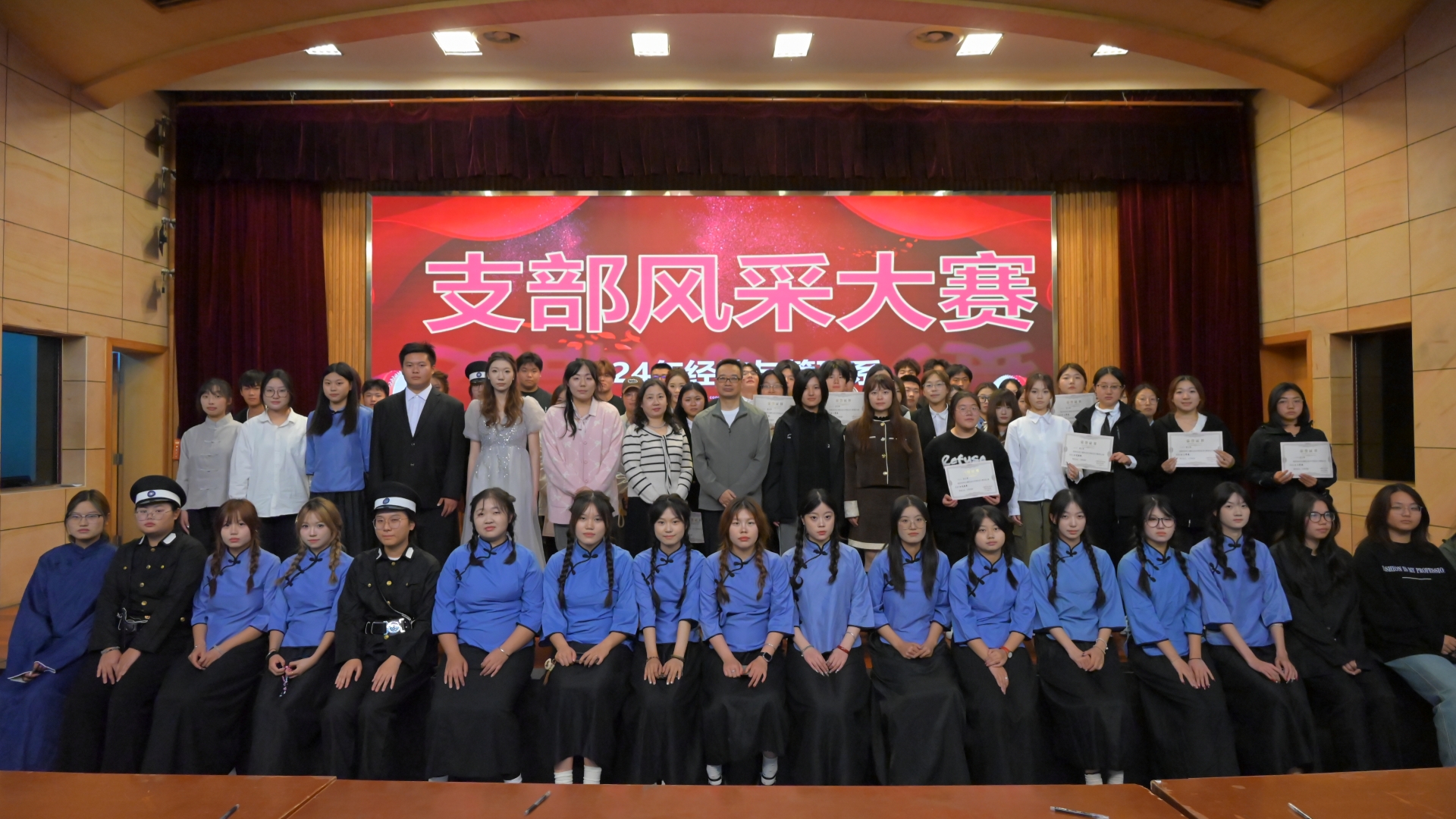为进一步引导青年学习党的二十大精神,响应“永远跟党走,奋进新征程”的号召,培养广大团员青年爱党爱国意识,坚定理想信念,展示支部建设成果和精神风貌,经济与管理系于2024年10月31日在报告厅举办第十一届团支部风采大赛初赛。经济与管理系副主任(主持工作)陶亚宁、专业教师代表、辅导员代表、学生会主席团代表担任评委,24级全体团支部到场。