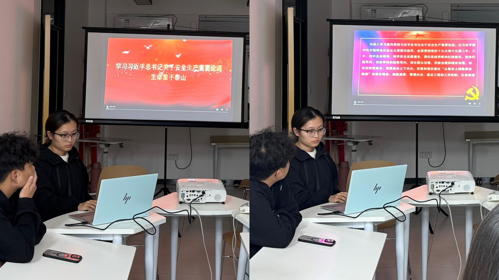活动结束后,辅导员助理薛媛元组织班委们在南三一站式社区学习习近平总书记关于安全生产重要论述和重要指示批示精神,通过观看《生命重于泰山》、“习近平总书记关于安全生产重要论述”电视专题片,全面领会习近平总书记关于安全生产重要论述的精髓要义。短片中强调了消防安全是国家公共安全的重要组成部分,特别是在教育领域,保障学生的消防安全更是重中之重。总书记的指示批示精神,不仅为校园消防安全工作指明了方向,也为班委们树立了高度的责任感和使命感。在观影结束后,班委们结合学校实际情况,分享自己对校园消防安全的理解与看法。大家积极发言,提出了诸如加强宿舍用电管理、宿舍区域禁烟控烟、增强个人自救互救能力等具体建议。最后,大家参加了消防知识小测验,通过趣味问答的形式,检验班委们的学习成果,进一步巩固了消防安全知识。薛媛元鼓励大家将所学知识带回班级,成为消防安全的小宣传员,带动全班同学共同关注消防安全,共同守护我们的美好校园。
