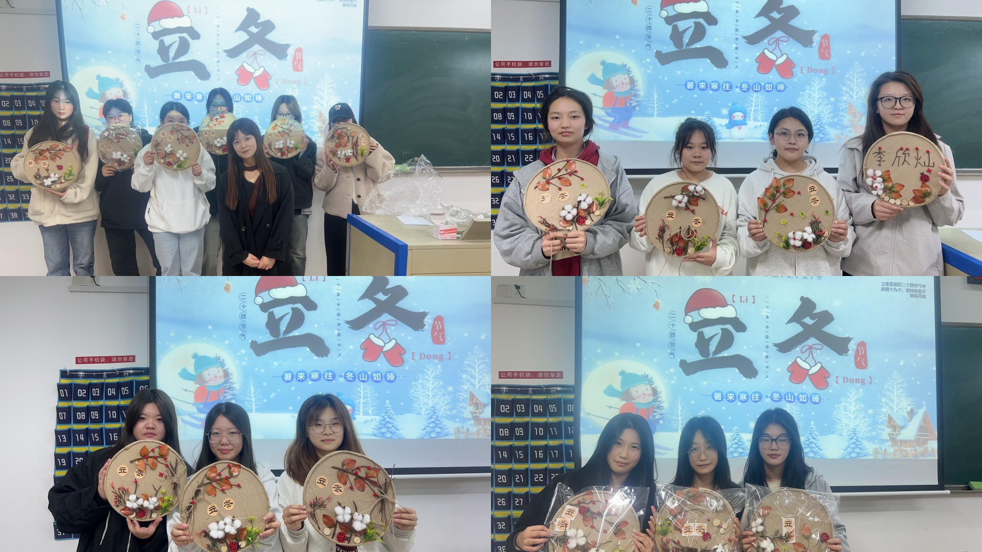 为了弘扬中华民族传统文化,增强学生对节气的认识和体验,同时促进同学间的交流与合作,2024年11月6日,经济与管理系在9301教室举办了一场别开生面的“立冬巧手工,温暖迎寒冬”特色活动,233302班全体同学参加。此次活动不仅丰富了同学们的校园文化生活,还让大家在动手制作中感受到了立冬的温暖氛围。