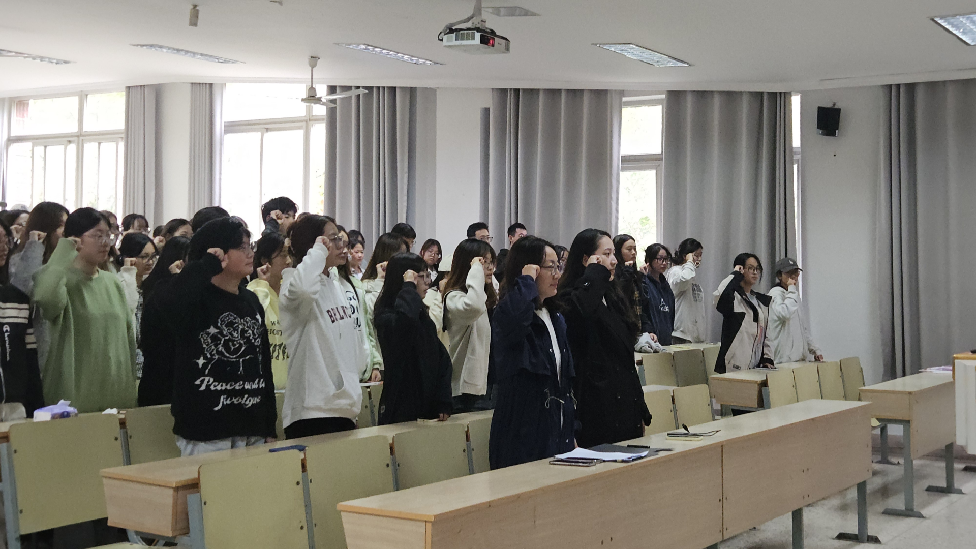 党支部书记、副主任周慧对即将出征的小雨滴志愿者提出四点希望:一要提高思想认识,强化责任担当;二要严格遵守纪律,树立良好形象;三要提供优质服务,珍惜锻炼机会;四是关注天气温差,做好自我防护。她希望经管青年能够珍惜每一次志愿服务的机会,以高度的使命感、荣誉感、责任感,为赛事提供优质服务。