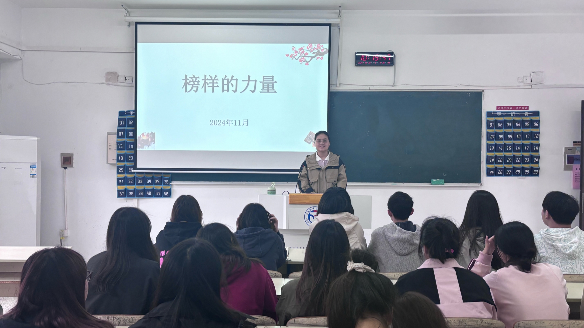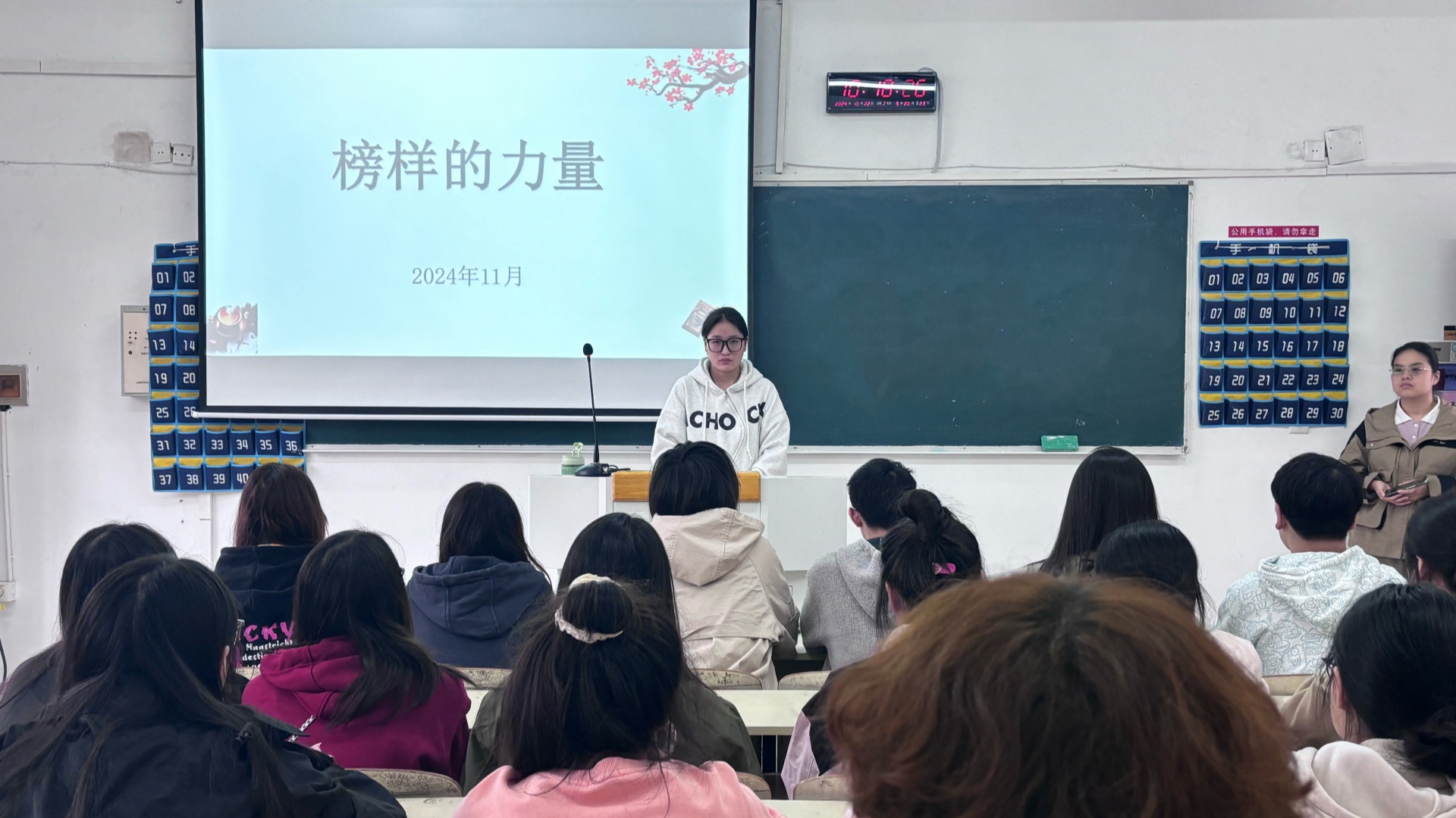为发挥朋辈引领作用,彰显优秀榜样力量,教育引导广大青年向榜样看齐,更好地认识自己,明确目标,11月20日,经济与管理系在1104教室组织开展“榜样的力量”分享会。本次分享会辅导员呙竹云主持, 233302、233303班全体学生参加。