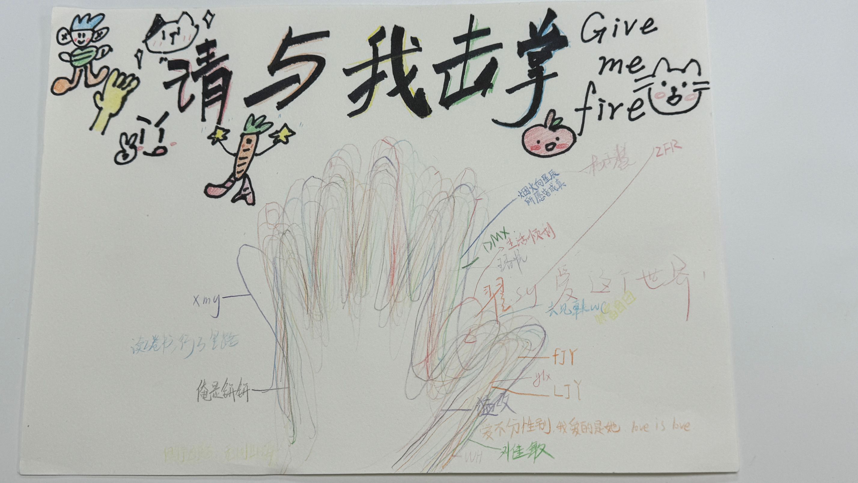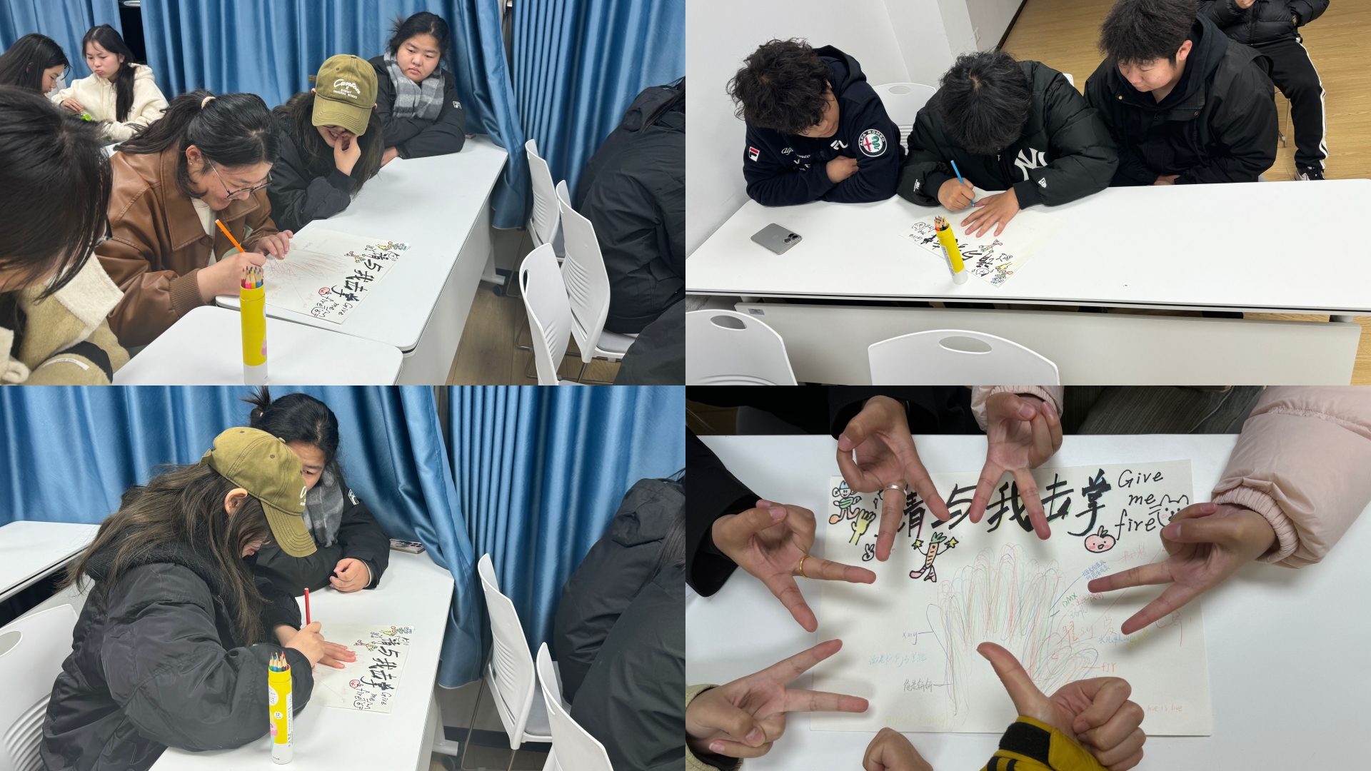 活动开始,辅导员刘妍先在纸上画下自己的掌印,并附上一句祝福语“穿过逆境,抵达繁星。”在李想的带领下,同学们一个一个接着在纸上印下属于他们的掌印,留下对未来的美好与期许。