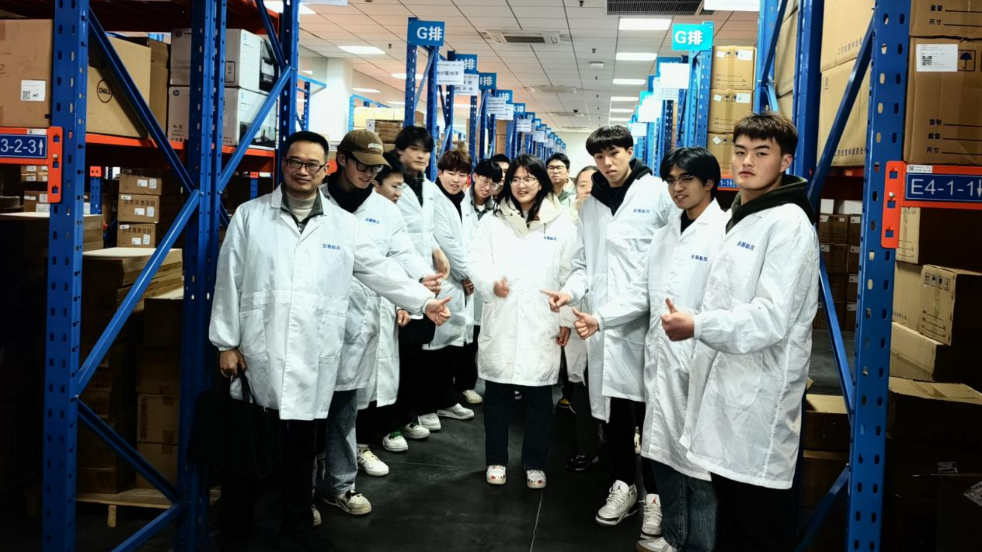 金智科技制造中心总经理胡茂俊对澳门六合彩论坛 师生的到来表示了热烈欢迎,在经过工厂安全教育后,全体师生穿上防静电服,大家在胡总的带领下参观了公司的物流仓储部门和生产部门。在参观过程中,胡总详细介绍了金智科技在供应链管理及生产流程中的数字化应用情况,特别是如何通过先进的技术手段实现供应链的透明化、高效化和智能化。学生们听得津津有味,不时提出自己的疑问和见解,胡总也耐心地一一解答。