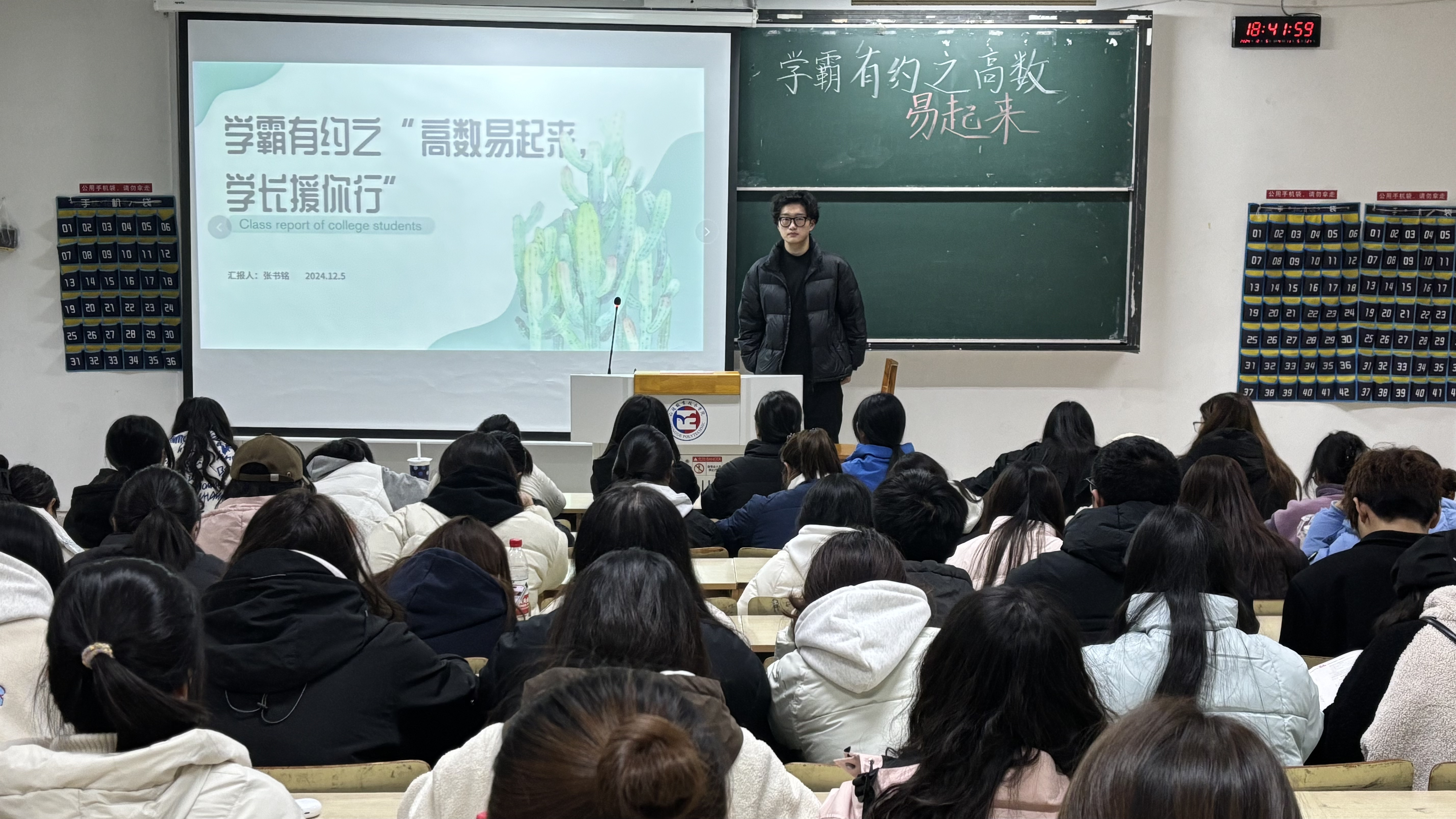 为进一步提升学风建设,营造积极向上的学习氛围,帮助学生更好地掌握高等数学这一关键学科,经济与管理系于2024年12月5日在1102教室开展了“学霸有约之高数‘易’起来,学长‘援’你行”学风建设活动。大数据与会计专业150余名同学积极响应,怀揣着对知识的渴望与对未来学业规划的热情,齐聚一堂。本次活动邀请了233303班的优秀学生代表张书铭作为主讲人,以其扎实的学术功底为同学们答疑解惑。