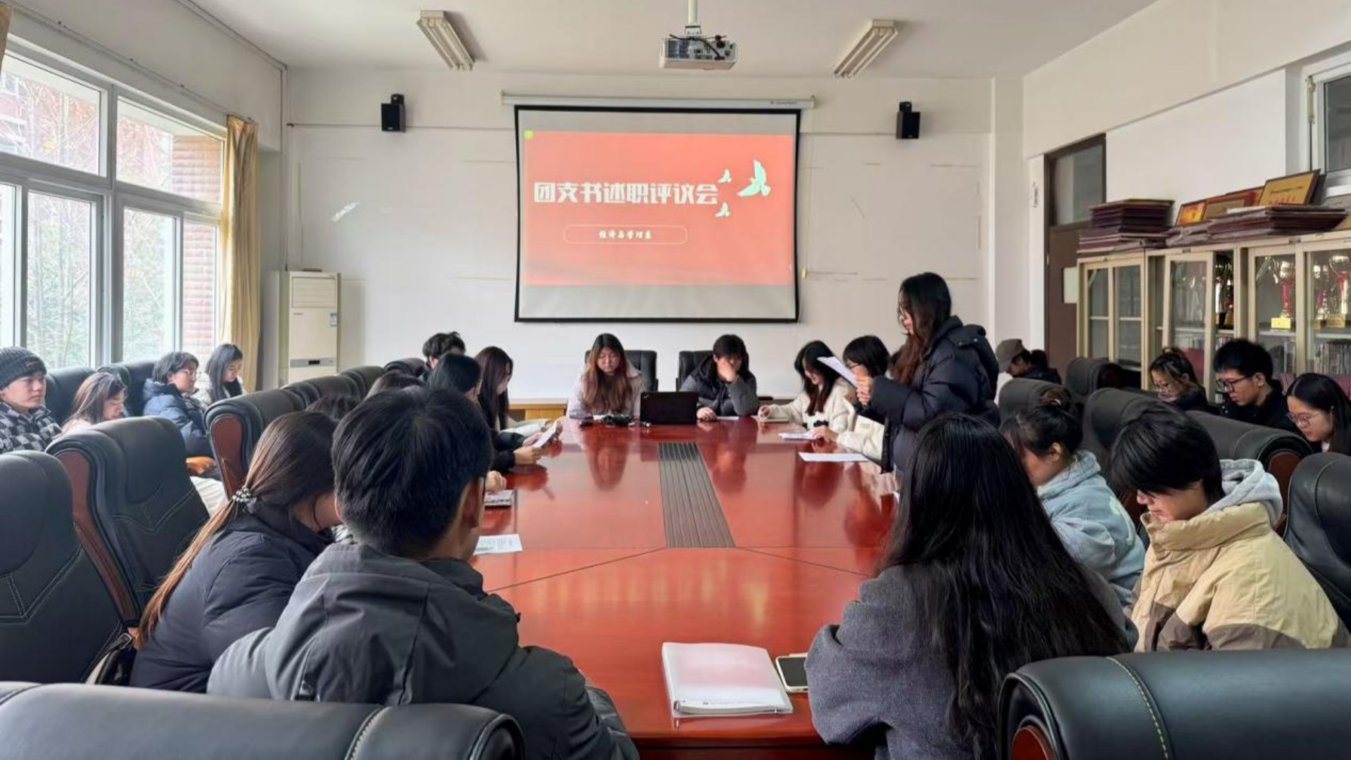 为助力我系各团支书明晰自身职责,厚植服务意识,锤炼过硬本领,并搭建团支部间互学互鉴、携手合作的平台,切实加强基层团组织建设,12月11日,经济与管理系在七号楼三楼会议室成功召开了2024年团支部书记述职评议会。经管系团总支书记倪冰慧及全体团支书出席了本次会议,会议由系团总支副书记唐淳佳主持。