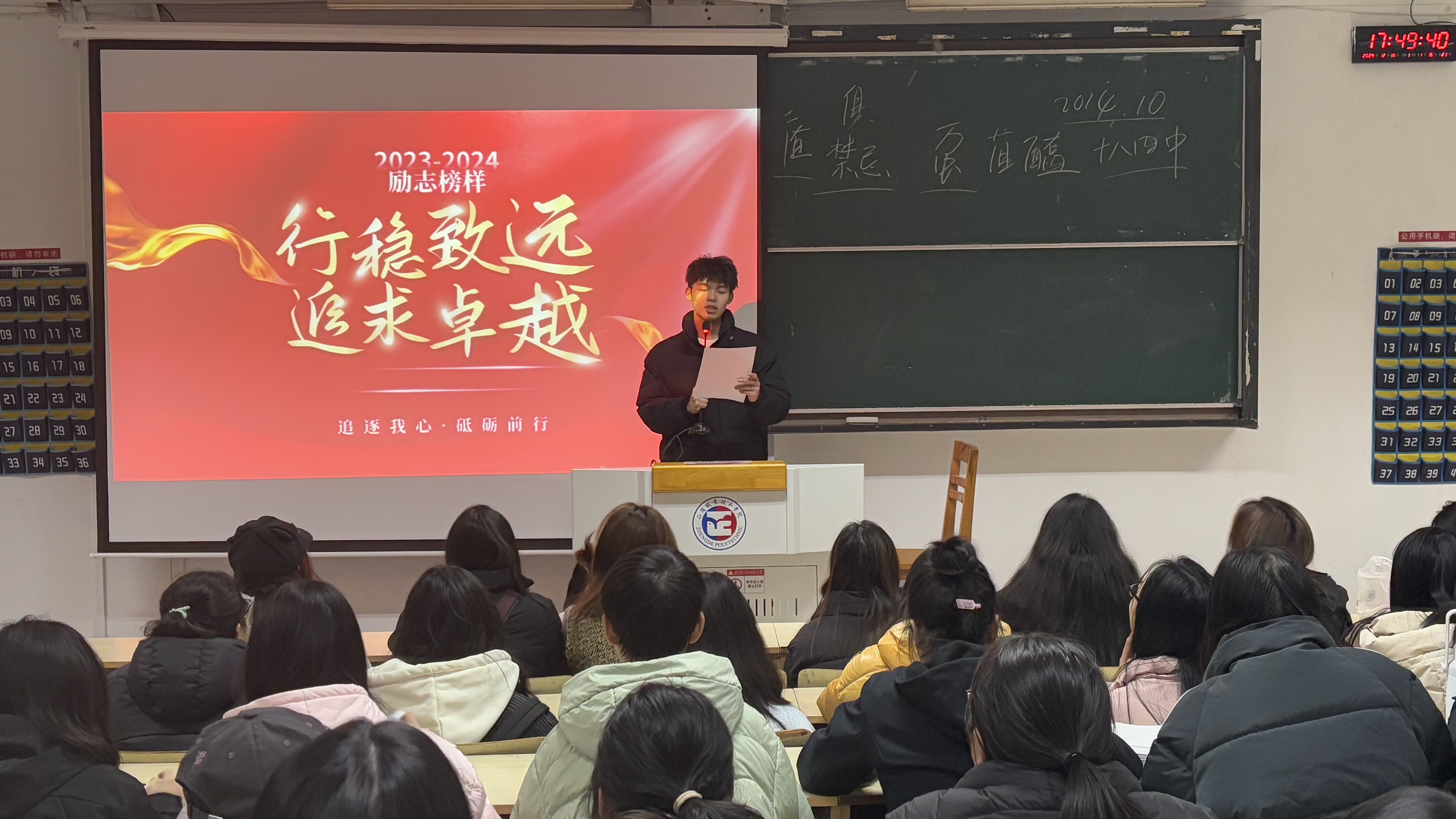 为了充分发挥优秀学生的示范引领作用,激发大一新生的学习热情与职业规划意识,经济与管理系于2024年12月16日在1102教室举开展以“励志榜样:行稳致远,追求卓越”为主题的朋辈宣讲会。本次宣讲会由国家励志奖学金获得者田俊杰主讲,辅导员刘妍主持。