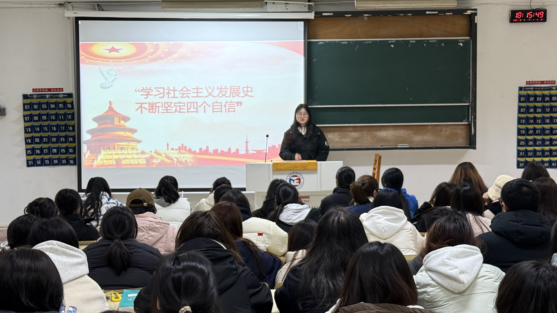 班会上,毛玉涵首先向同学们阐述了“四个自信”即道路自信、理论自信、制度自信、文化自信的深刻内涵和重要意义,接着通过案例和详实的数据展示了中国在经济、科技、文化等各个领域取得的辉煌成就,引导同学们深刻认识到中国特色社会主义道路的正确性和优越性。随后毛玉涵又从历史和现实的角度出发,详细阐述了中国特色社会主义道路、理论、制度、文化的独特优势和强大生命力,鼓励同学们作为新时代的大学生,应当深刻理解并积极践行“四个自信”,将其融入到日常学习和生活中,为实现中华民族伟大复兴的中国梦贡献青春力量。