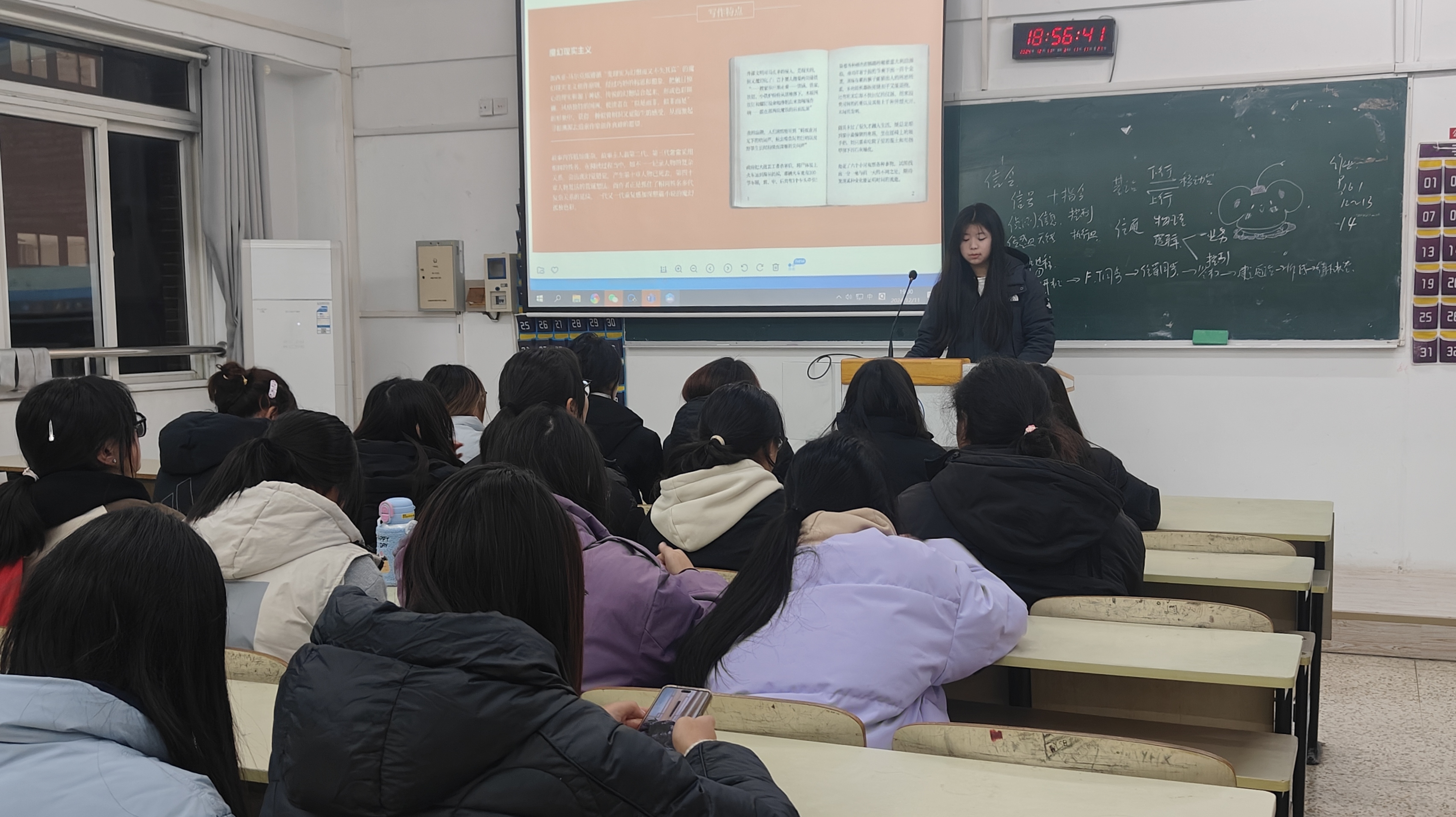 活动精心设计了多个环节以确保每位同学都能沉浸于阅读之旅。首先,利用晚自习时间,同学们集体观看了B站知名UP主“一只萧包子”制作的《百年孤独》深度讲解视频,这一环节不仅帮助大家快速构建了对作品背景及人物关系的理解框架,还激发了大家深入阅读的兴趣。随后,班级组织了一次集体购书行动,同学们组团前往书店选购《百年孤独》,并在现场翻阅,初步感受马尔克斯笔下的魔幻现实主义世界。紧接着,同学们相约在食堂读书角、图书馆自习室、校园紫藤长廊等地点,共享阅读时光,相互讨论书中情节与人物性格,形成了良好的阅读氛围。活动的高潮部分在于,每位同学需在30天内坚持打卡阅读,并在精美的信纸上撰写读后感,最终在班会上轮流上台交流心得。班会上,王香悦同学感慨道:“《百年孤独》不仅是一部家族史,更是对人性、时间与孤独的深刻探讨,这次活动让我学会了从不同角度审视问题。”孙睿曦同学则分享说:“通过阅读,我感受到了文字的力量,它让我更加珍惜现实中的每一次相聚,也激励我在学习中不断探索未知。”
