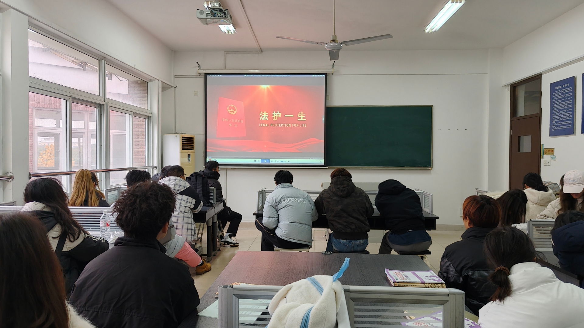 在观看过程中,同学们全神贯注,被视频中的案例和讲解深深吸引。他们时而认真记录重点内容,时而与身边同学交流感悟,深刻体会到宪法并非高高在上的抽象条文,而是切实保障人民权益、维护社会秩序的有力武器。