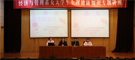 为了进一步加强女生的青春成长教育,增强女生自尊自爱的意识,4月1日晚,经济与管理系在报告厅举办“遇见最美的自己”为主题的女大学生生理健康知识专题讲座,全系所有女生参加。此次活动邀请了秦淮区妇幼保健所赵颖所长和夏秀梅主任担任主讲嘉宾。副院长薛忠云出席会议并作动员。会议由经管系副主任吕品主持。