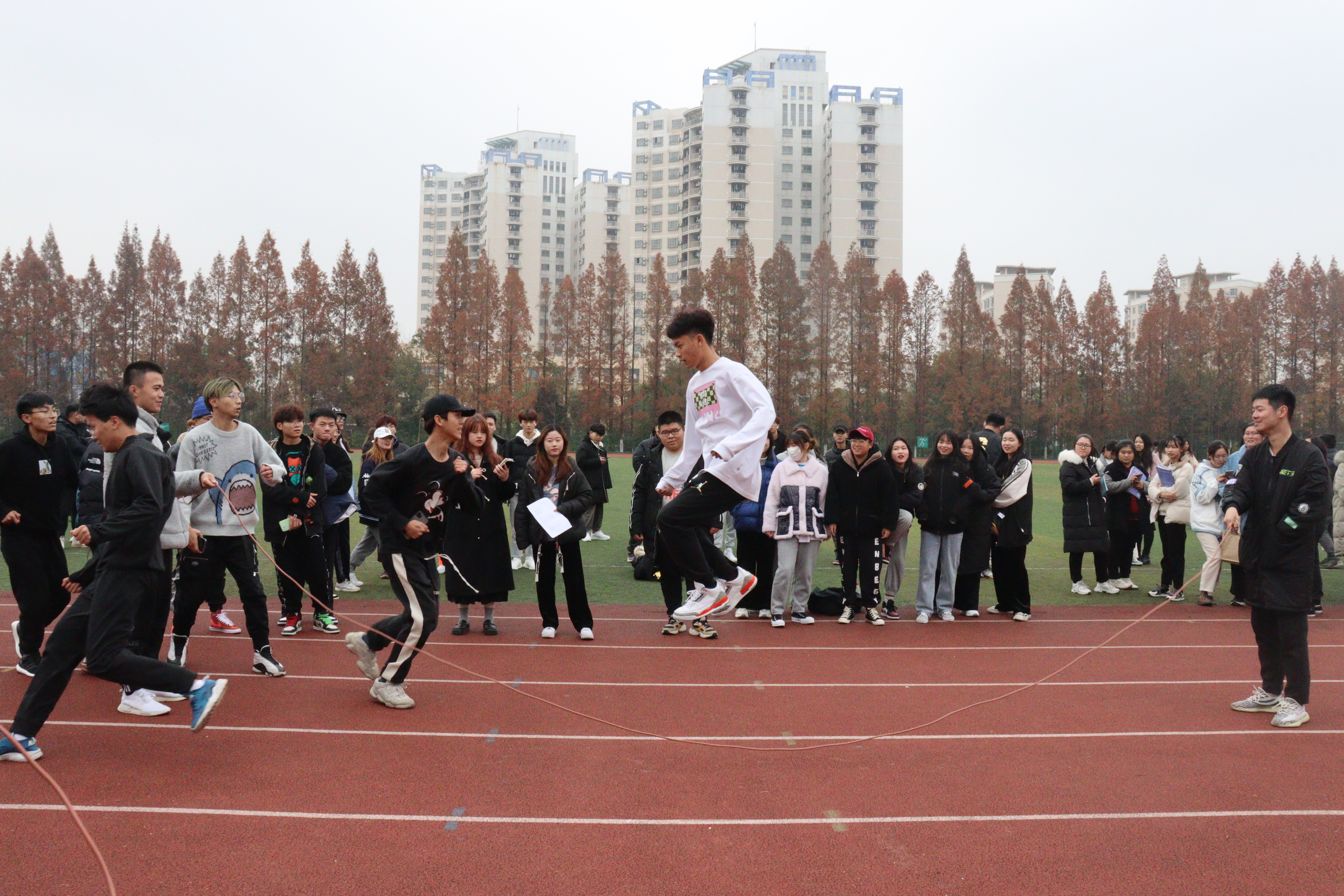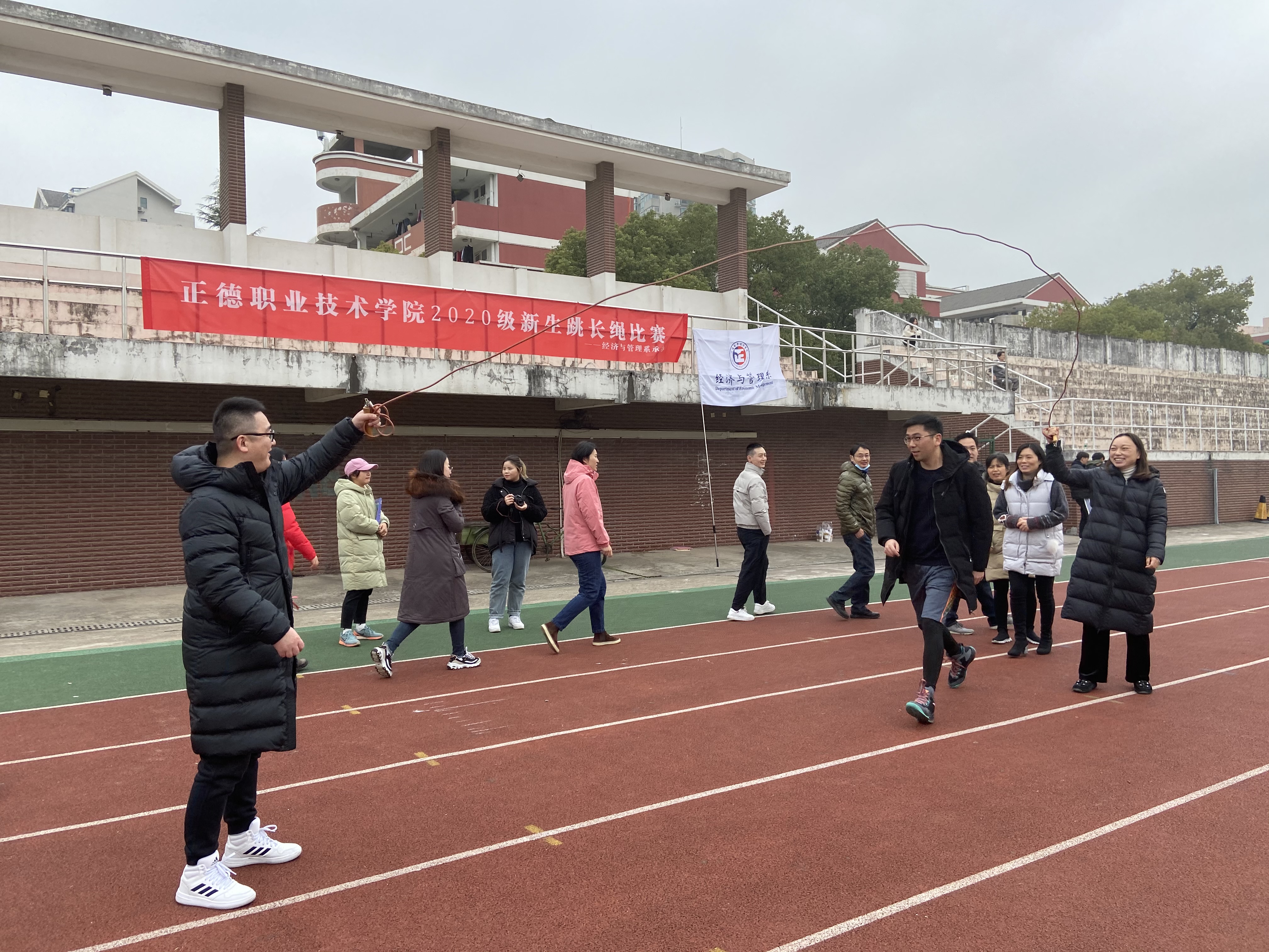 12月10日,经济与管理系在田径场举办了2020级新生跳长绳比赛。全体2020级同学及班主任、导师参与了此次活动。