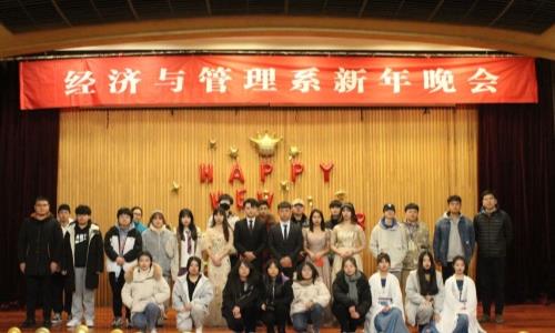 为庆祝2021新年的到来,展现经济与管理系学生风采,1月3日晚,经济与管理系在学院报告厅举办“情系经管,执梦远航”元旦迎新年晚会。经济与管理系副主任祖国,团支部书记曹宁老师等师生代表出席晚会。