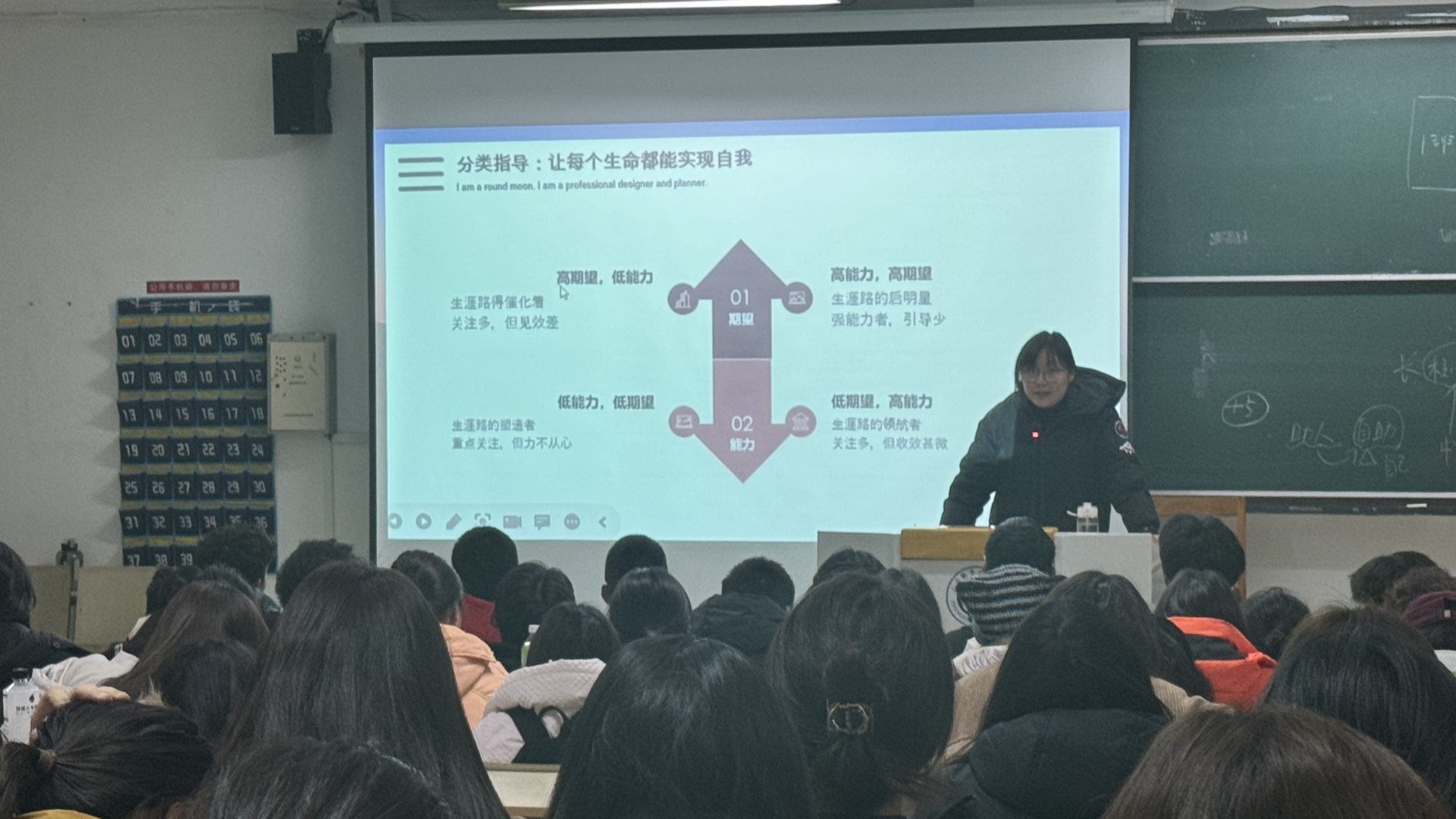 为进一步促进大一学生正确树立职业规划意识,充分发挥辅导员在学生教育成才中的重要作用。经济与管理系于2023年12月4日在1202教室开展“回首过去,展望未来”职业生涯规划教育主题班会。2023级大数据与会计4、5班和市场营销2班、网络营销与直播电商班全体同学参加,班会由辅导员刘妍主持。