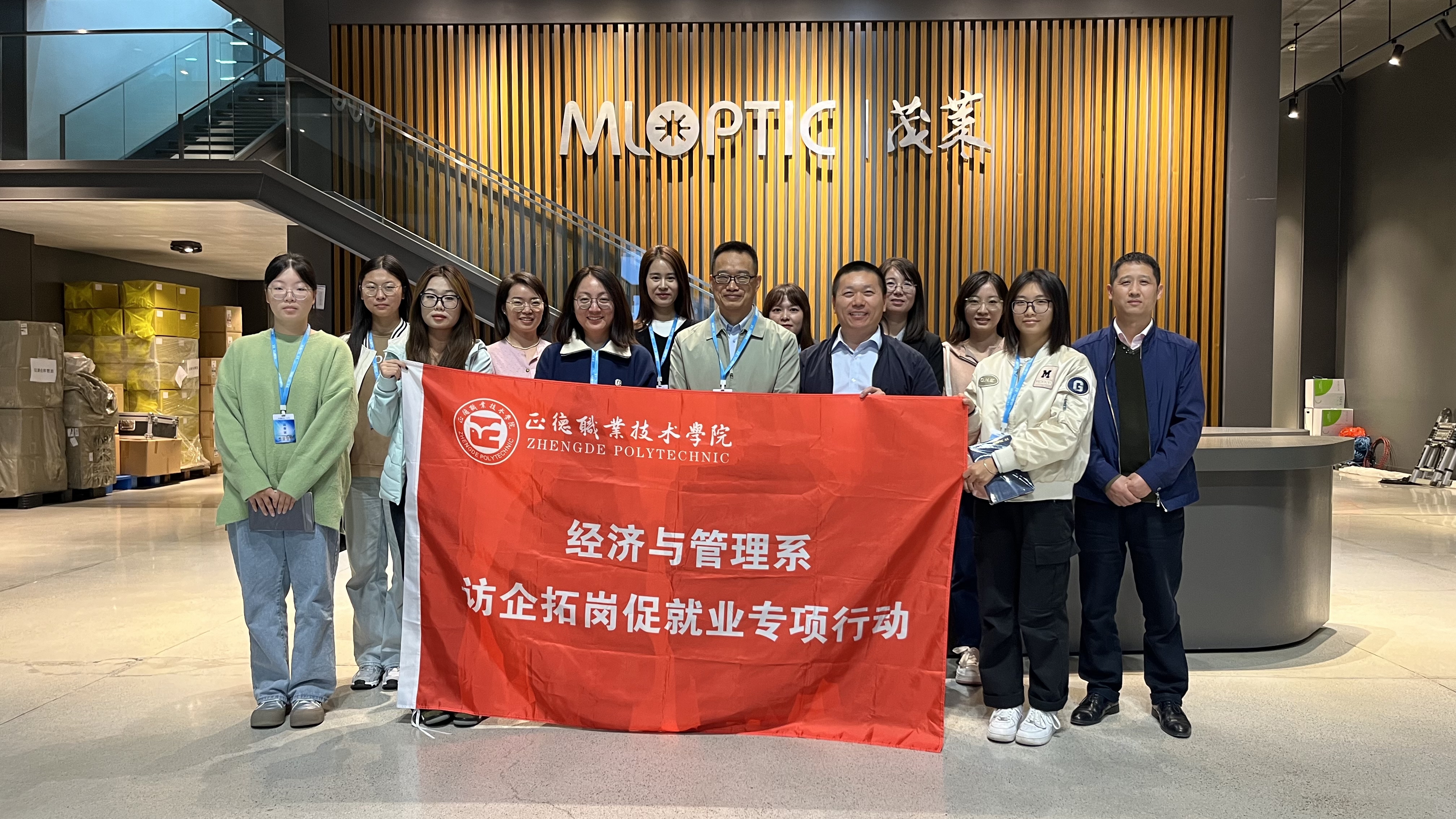 为探索产学研一体化合作模式,拓宽学生的实习就业渠道,为学生提供更多实践锻炼的机会。2024年10月24日下午,经济与管理系前往南京茂莱光学科技股份有限公司(以下简称“茂莱光学”),与企业共同探讨校企合作与产教融合的新路径。经济与管理系副主任(主持工作)陶亚宁,党支部书记、副主任周慧,教师李家唸,辅导员呙竹云、刘妍,部分学生代表参加。